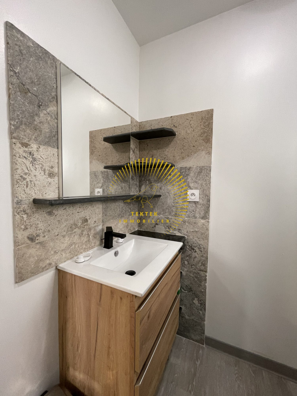 La salle d'eau moderne et fonctionnelle avec douche à l'italienne, un wc et un meuble avec vasque lave main