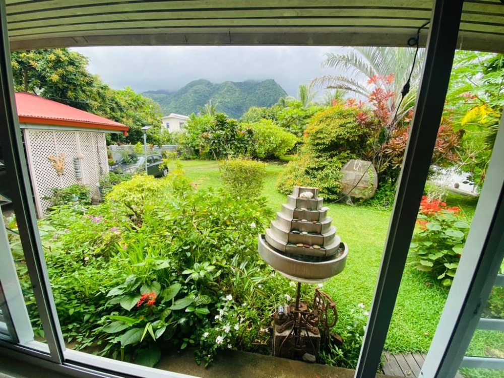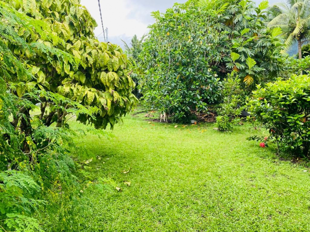 La propriété est un havre de paix et sérénité, arborée de nombreux fruitiers et de nombreuses plantes tropicales rares, elle satisfera les amoureux de la nature et du jardin qui apprecient le calme et la beauté d'un bord de mer. Une superficie de 3 650m² en bord de mer lagon sans aucun vis à vis , avec une vue sur le lagon et la montagne avec sa cascade.