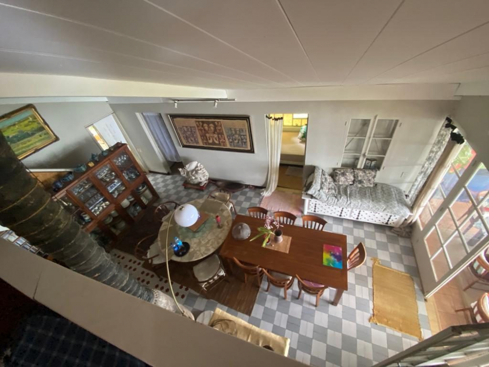 Au rez-de-chaussée, un très grand espace de vie comprenant le salon, la salle à manger et un espace detente, prolongé par une grande terrasse couverte et fermée. Ainsi qu'une salle de bain, deux chambres. La cuisine assez ancienne est entièrement équipée. A l'étage la mezzanine est composée d'une grande chambre, un bureau avec une vue sur le salon; le lagon et la montagne.