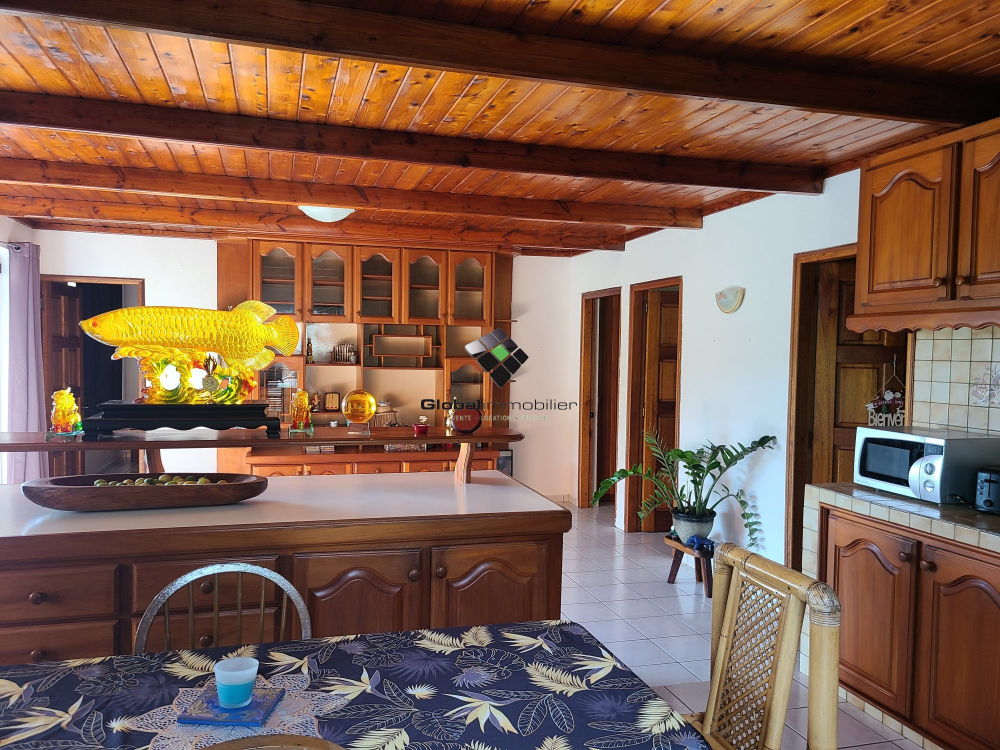1 étage : suite parentale, 2 CH dont une climatisée, 1 salle de bain, salon, terrasse, balcon et garage couvert pour 4 véhicule.