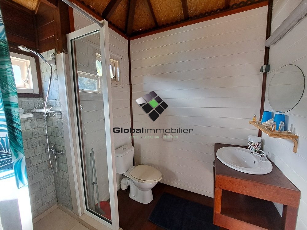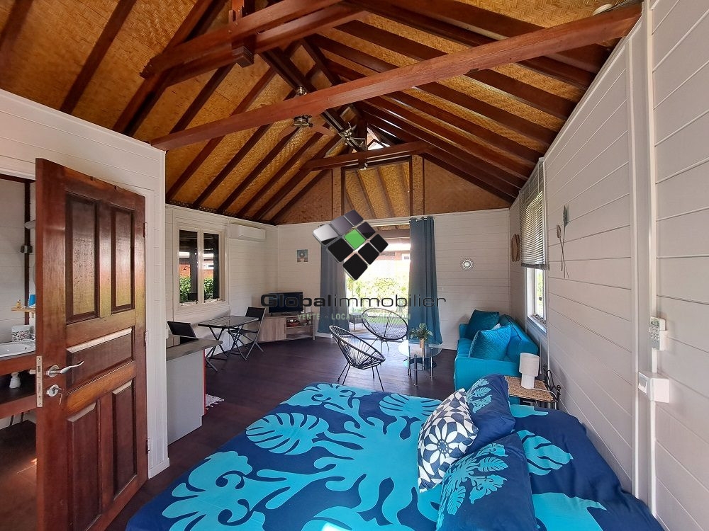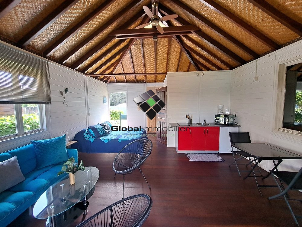 Nous vous proposons à la location, début PAEA, dans un havre de paix, Bungalow, Coté mer, avec accés direct à la plage, équipé, meublé, 1 pièce, terrasse couverte, salle d'eau avec toilette, jardin,.