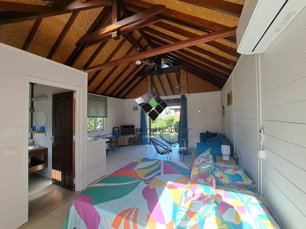Nous vous proposons à la location, début PAEA, dans un havre de paix, Bungalow, Coté mer, avec accés direct à la plage, équipé, meublé, 1 pièce, terrasse couverte, salle d'eau avec toilette, jardin,.