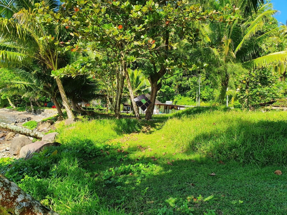 Terrain bord de mer d'une superficie de 2 873m², avec plage et vue sur un petit motu, presque sans vis à vis (juste une maison à côté).