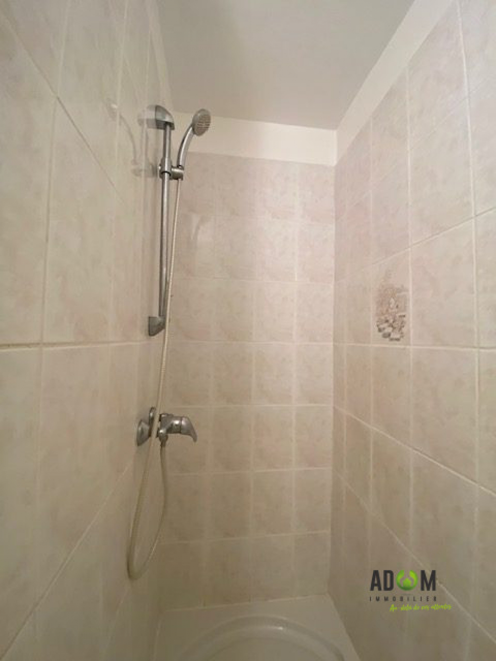 L'appartement est composé : d'un séjour climatisé donnant sur une terrasse couverte , d'une cuisine aménagée et équipée, d'un rangement sous escalier et d'un toilette indépendant.