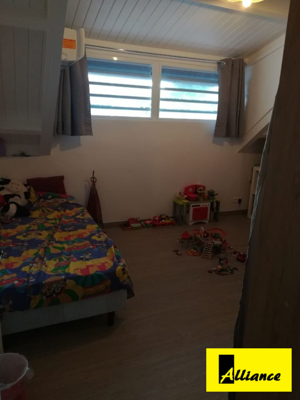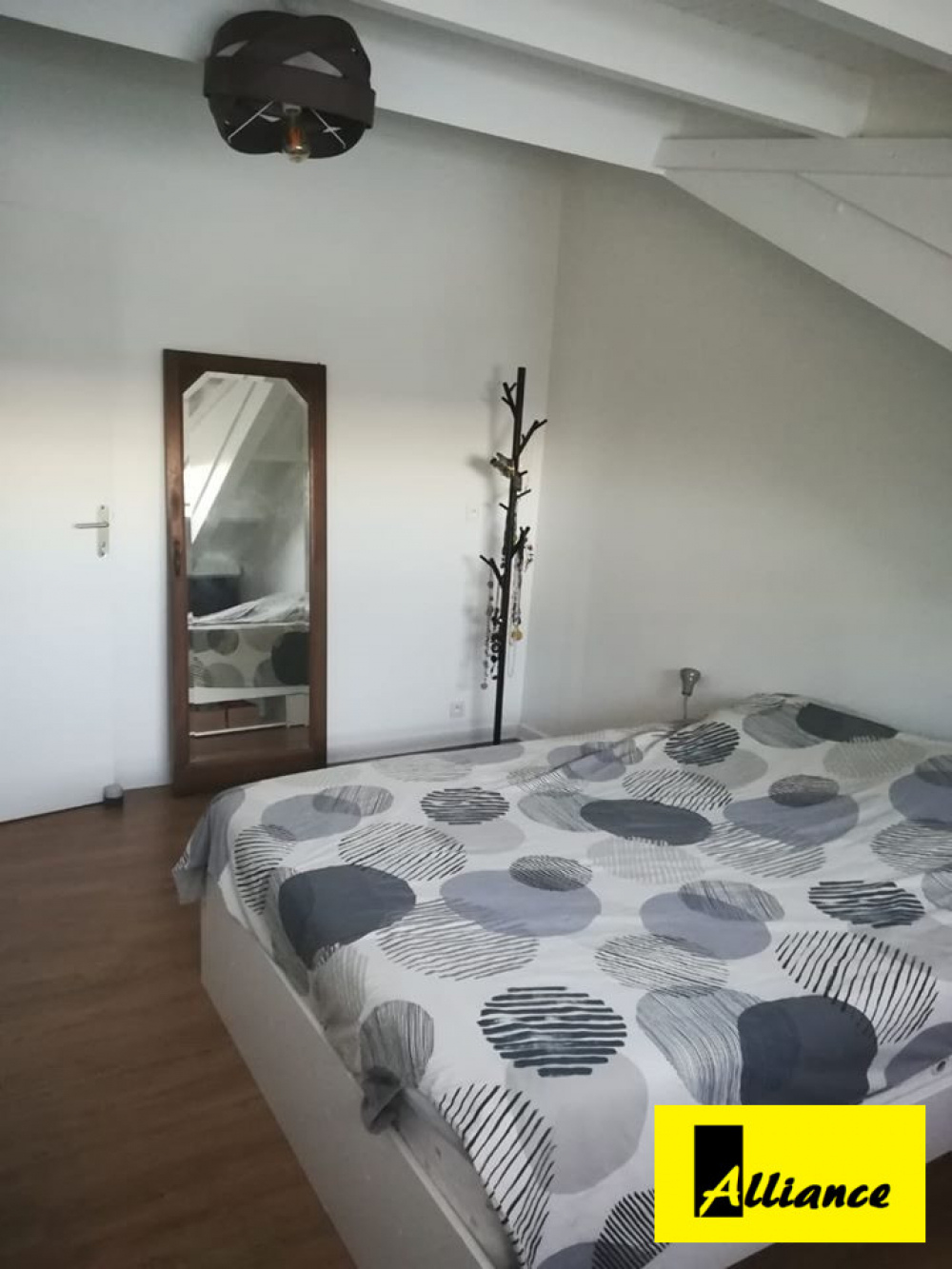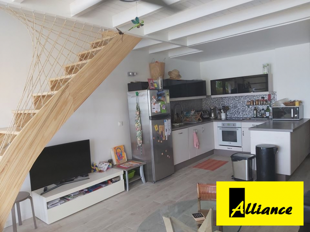 77 m 2 au total, une belle terrasse couverte, en duplex, salon avec cuisine américaine.
