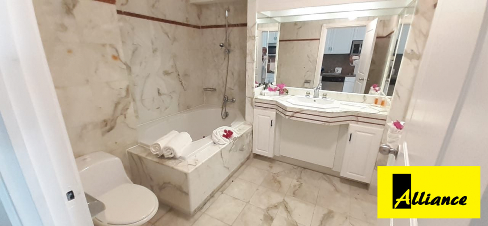 piscine, bar, solarium, accès mer, eau, électricité, internet et climatisation compris dans les charges.