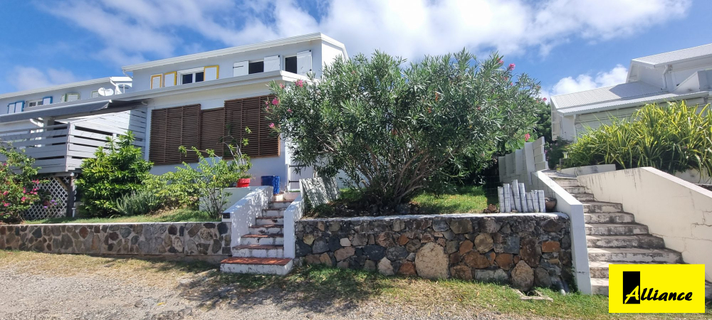 À vendre villa de 105 m² située dans une résidence calme à Mont-Vernon 1. Cette propriété non meublée offre une vue sur la mer des Caraïbes et Saint-Barth et est située à quelques pas de la plage, des commerces et des écoles.