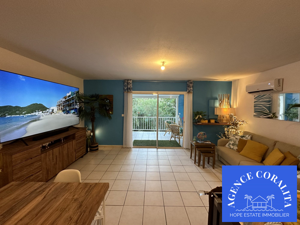 Oyster Pond, dans un ensemble résidentiel, vente d'une très agréable villa mitoyenne, d'un seul côté, bien agencée, elle bénéficie d'une grande terrasse à l'entrée, fermée par volet, d'un salon séjour avec cuisine, spacieux, wc visiteurs, à l'étage, vous trouverez trois vraies chambres et deux salles d'eau et une jolie terrasse de 16 m2 complète l'ensemble, offrant une vue panoramique sur l'entrée de la Marina et l'océan- possibilité acté par AG de construire une terrasse de 10 M sur 3 sur le côté de la maison-