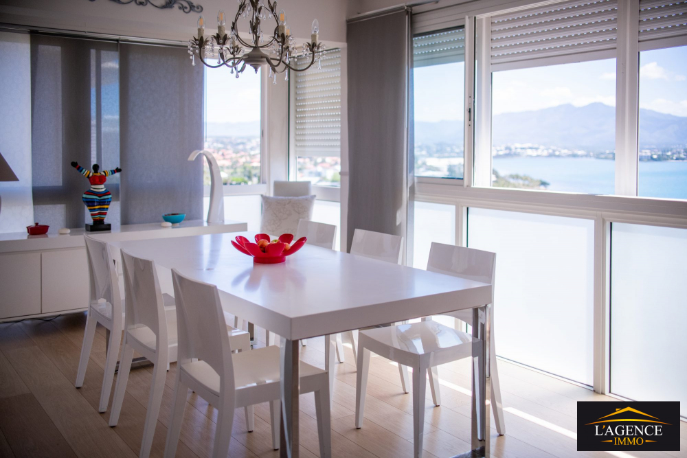 Magnifique Appartement de type F4 composé d'une entrée, d'un séjour prolonger par une jolie terrasse d'environ 24 m² posée sur le lagon, une cuisine équipée, une buanderie, une salle de bains, un WC indépendant, 2 chambres, une suite parentale avec salle d'eau et WC .