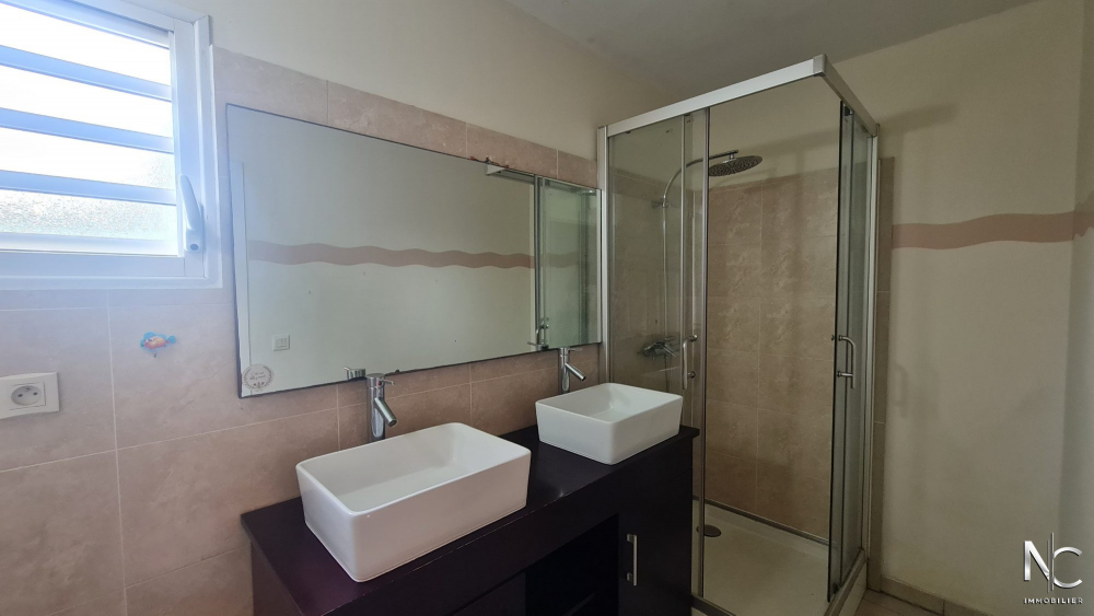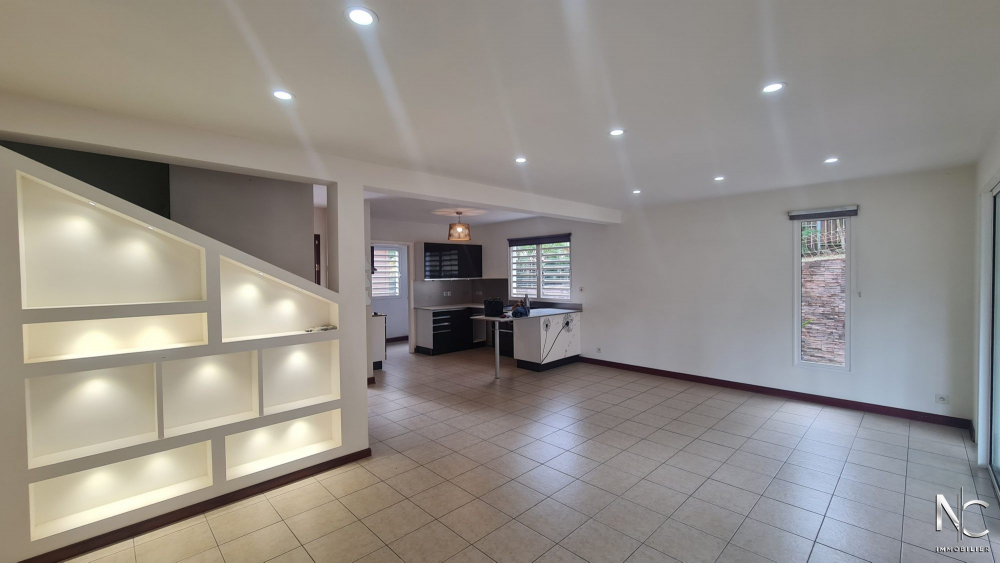 Située dans le col de Tonghoué, Résidence du Parc, villa F5 en duplex offrant, au rez-de-chaussée : un grand séjour/salon lumineux, une cuisine américaine équipée, un wc indépendant, une chambre parentale avec une salle d'eau privative.