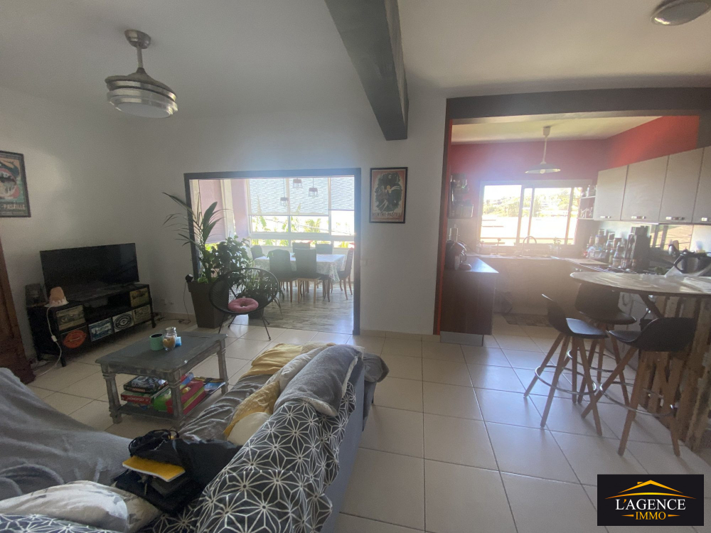 En accès de plain-pied, appartement de type F5 comprenant une entrée, un séjour prolongé par une terrasse fermée, une cuisine équipée et aménagée, une buanderie, deux chambres, une salle d'eau et un WC.