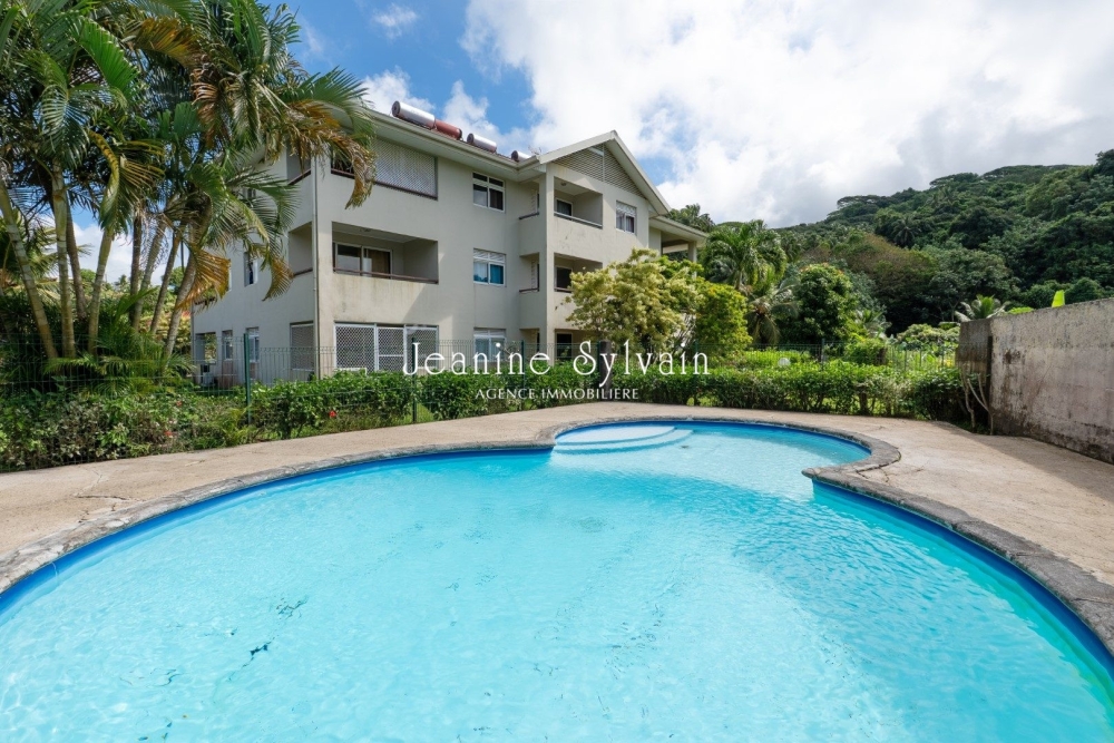 Appartement à vendre à Taravao, dans une petite copropriété calme avec piscine, rez de jardin comprenant une cuisine, séjour, chambre et salle d'eau.