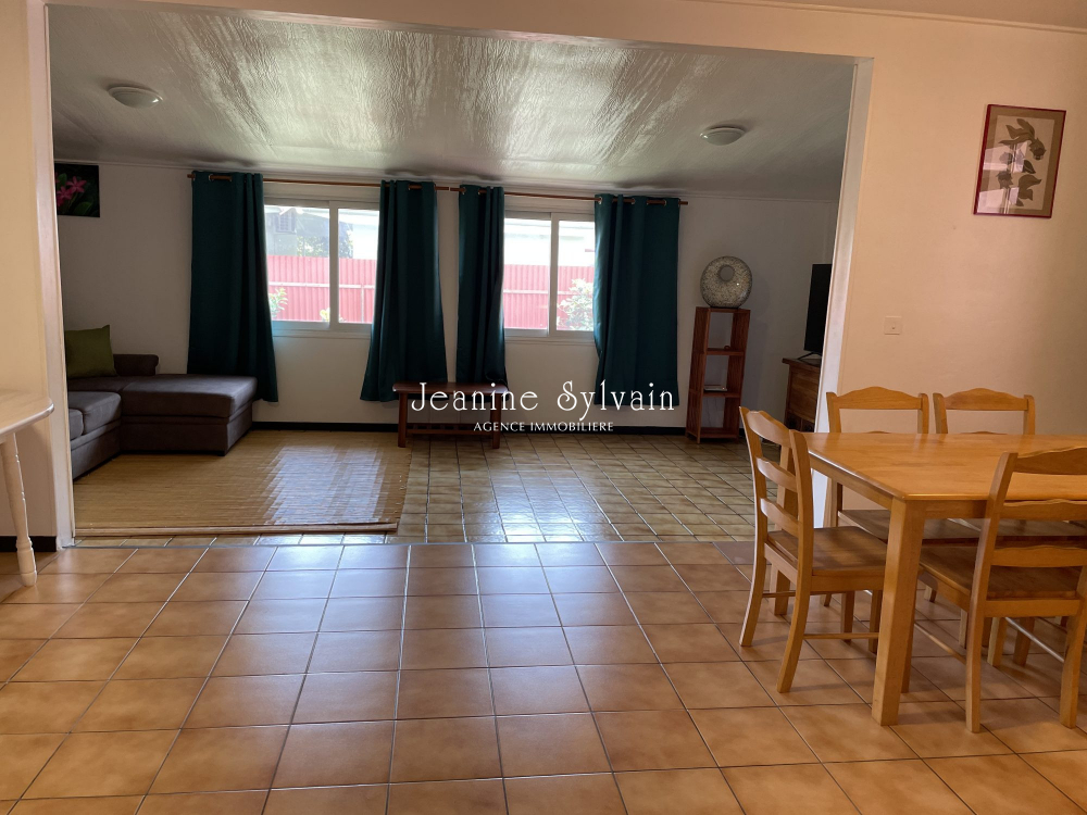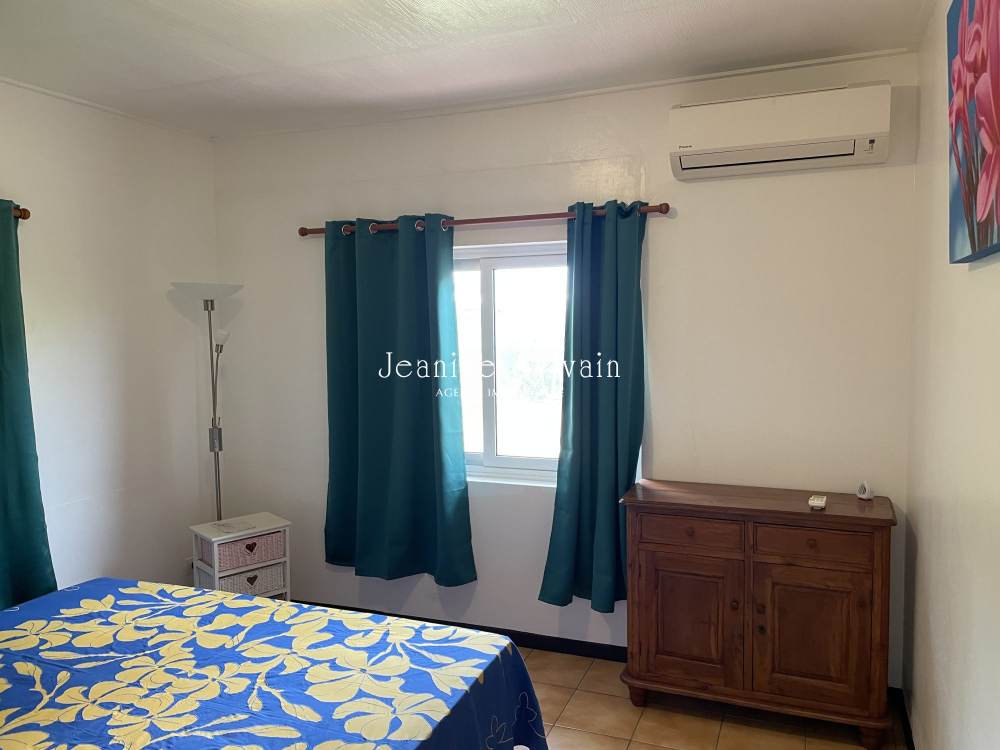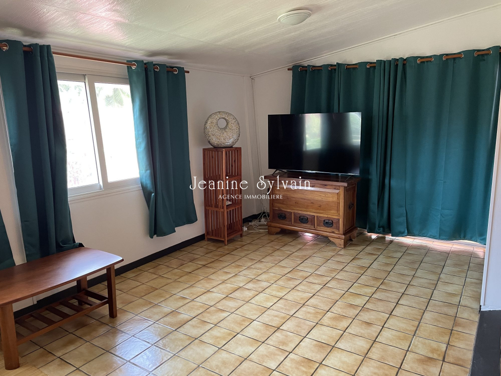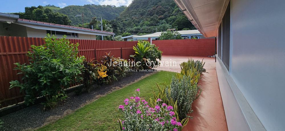 Dans la plaine de Punaauia, côté montagne, très bon environnement calme, dans beau jardin clôturé, maison en dur de deux chambres climatisées, une salle d'eau, un séjour cuisine équipée, terrasse couverte, buanderie, grand garage couvert.