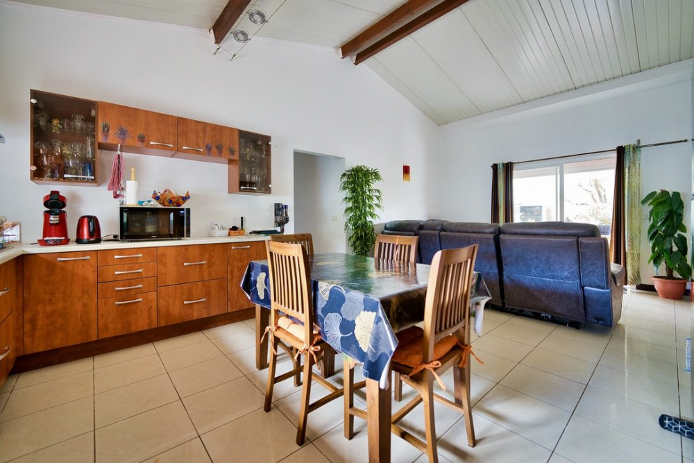Cette villa traditionnelle de plain-pied est bien entretenue, offrant un cadre de vie confortable. À l'entrée, vous découvrirez une grande cuisine fonctionnelle, ouverte sur un spacieux séjour, créant un espace convivial pour la famille et les amis.