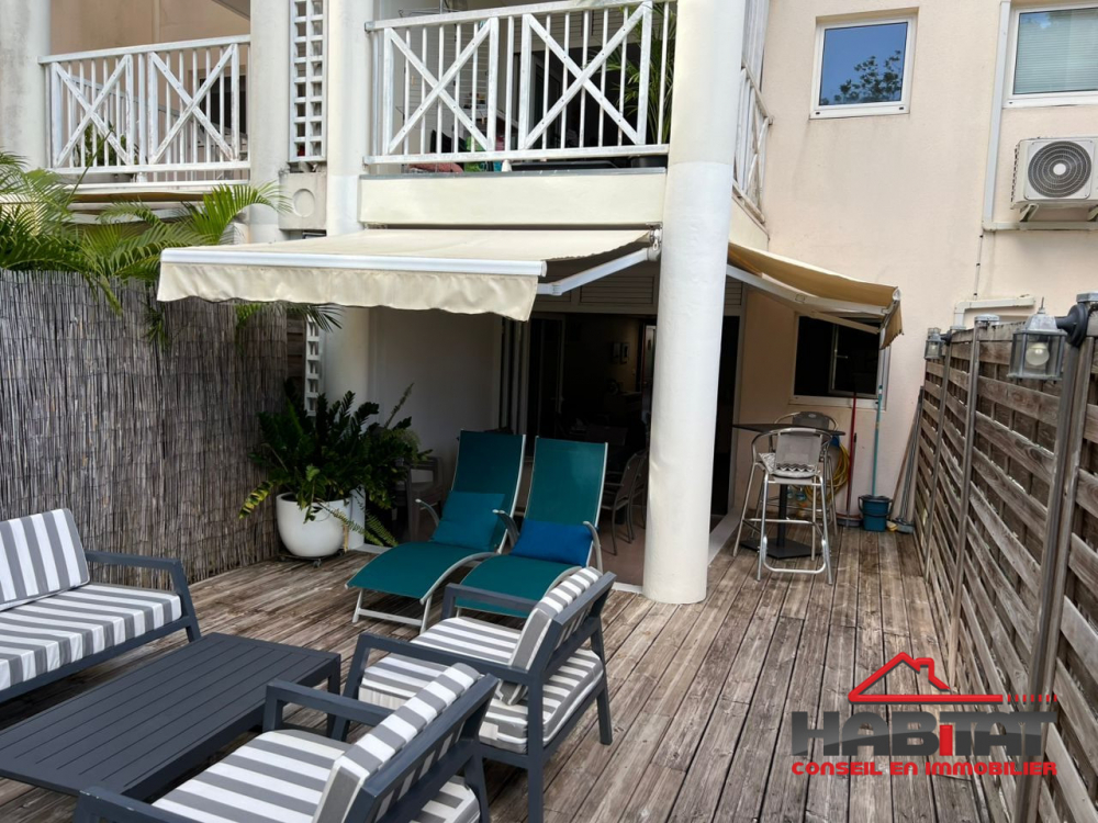 L'un des points forts de cet appartement est sans conteste sa terrasse de 28 m², un véritable havre de paix où vous pourrez vous détendre et profiter du soleil des Caraïbes. Imaginez-vous y sirotant un cocktail en admirant la vue sur la verdure environnante. De plus, l'accès à une piscine collective vous permettra de vous rafraîchir et de vous détendre après une journée bien remplie.