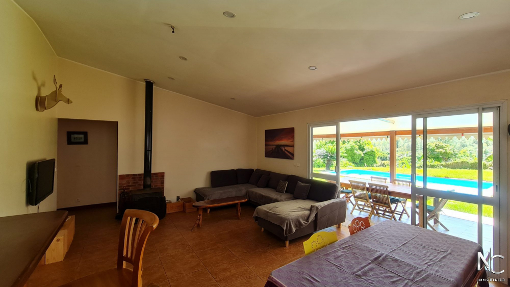 Au calme et sans vis-à-vis, charmante villa F5 sur un beau terrain de 11 ares. Entrée, séjour avec poêle à bois, cuisine américaine équipée, une suite parentale climatisée avec sdb + wc, 2 chambres, une grande pièce de 21 m² pouvant faire office de 4ème chambre, de bureau, de dressing ou encore de salle de jeux.