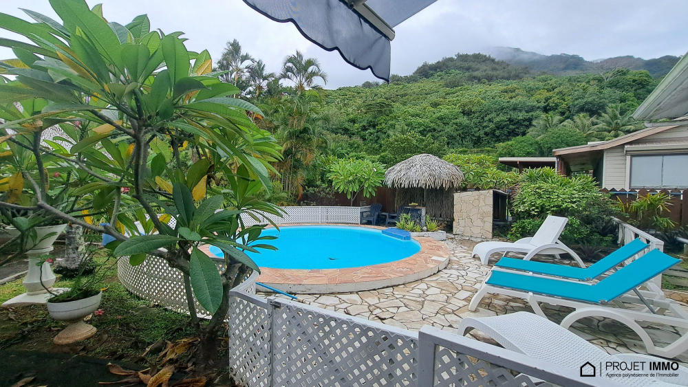 À l'extérieur, le jardin (inclus dans les charges mensuelles, en sus du loyer de base, l'entretien du jardin et de la piscine = 30.000XPF), un véritable éden tropical. La piscine, vous pour vous détendre et à la baignade sous le soleil radieux de Moorea, ou au frais sous le FARE POTE.