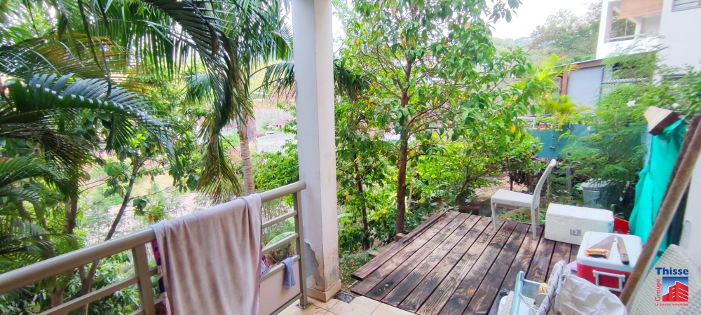 Bel appartement type T3 en rez-de-jardin de 73m2 comprenant un salon, une cuisine americaine aménagée et équipée, 2 chambres avec placards intégré dont une avec accés à la terasse couverte de 18m2, une salle bain avec WC, jardin arboré d'arbres fruitiers de 80m2 en pente