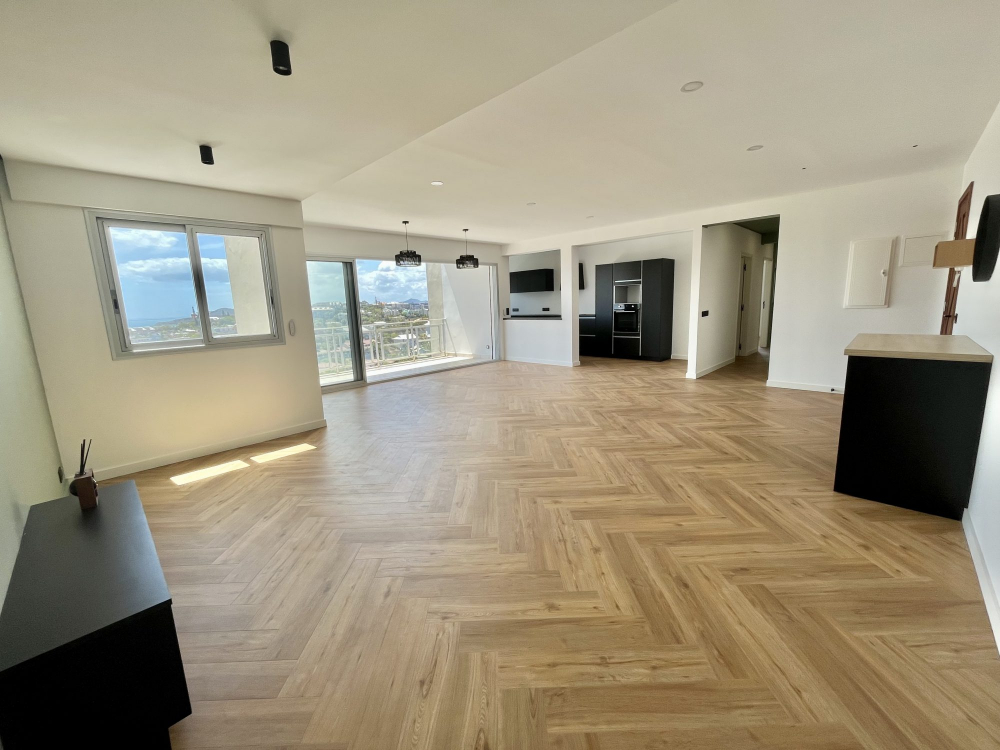 Idéalement situé à Motor Pool dans une impasse, magnifique appartement F4 entièrement refait à neuf avec des matériaux haut de gamme au 5ème étage d'une résidence avec ascenseur.