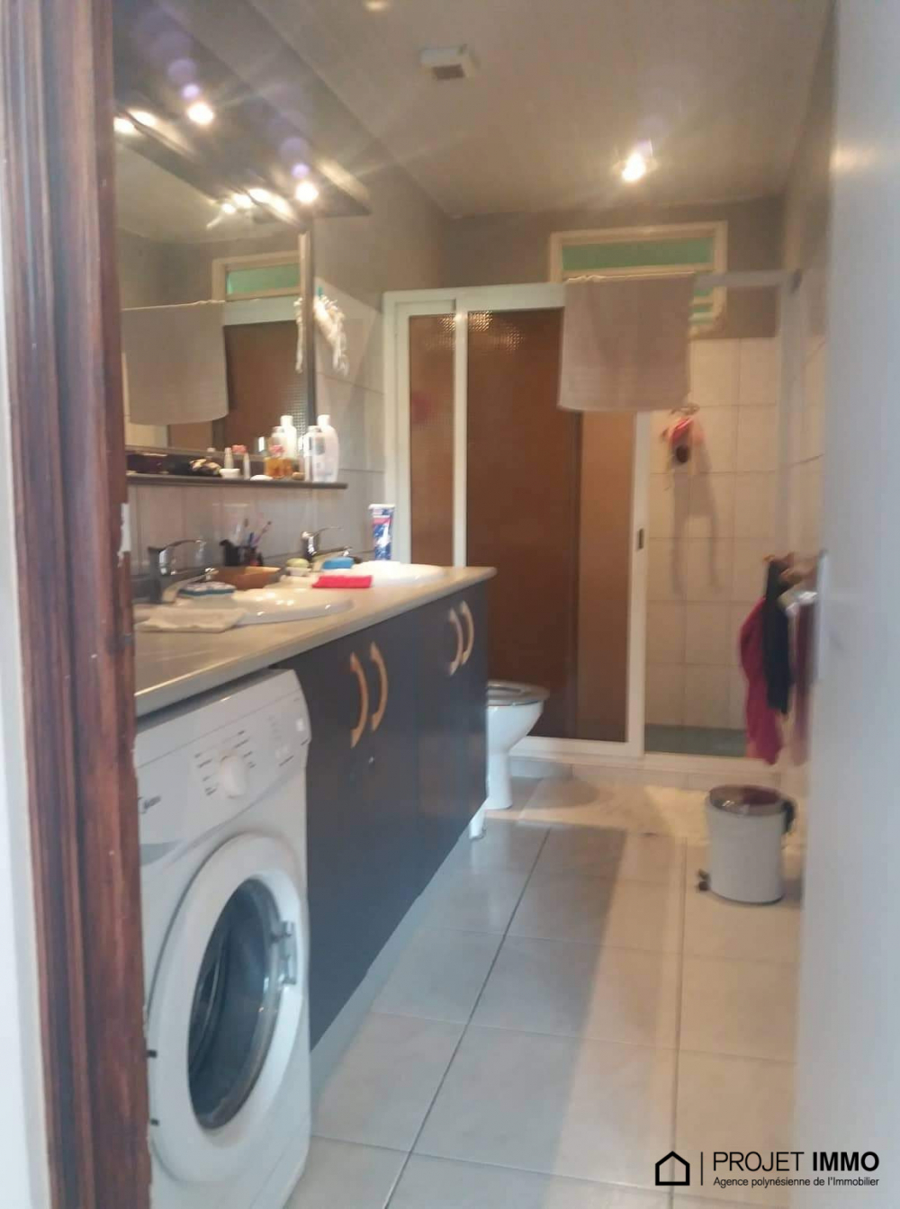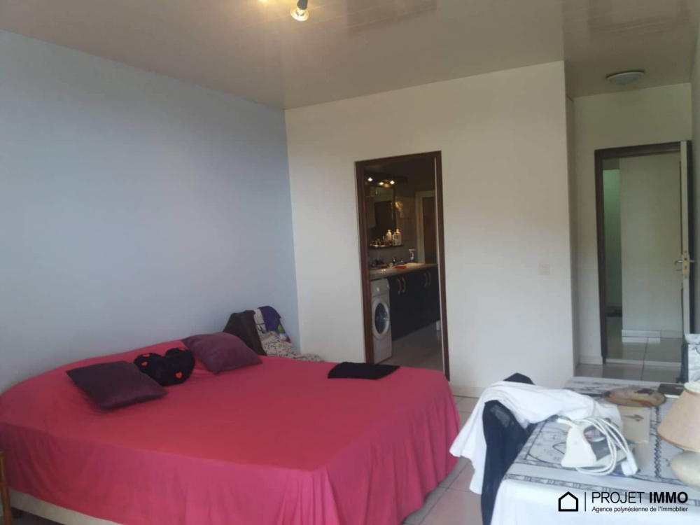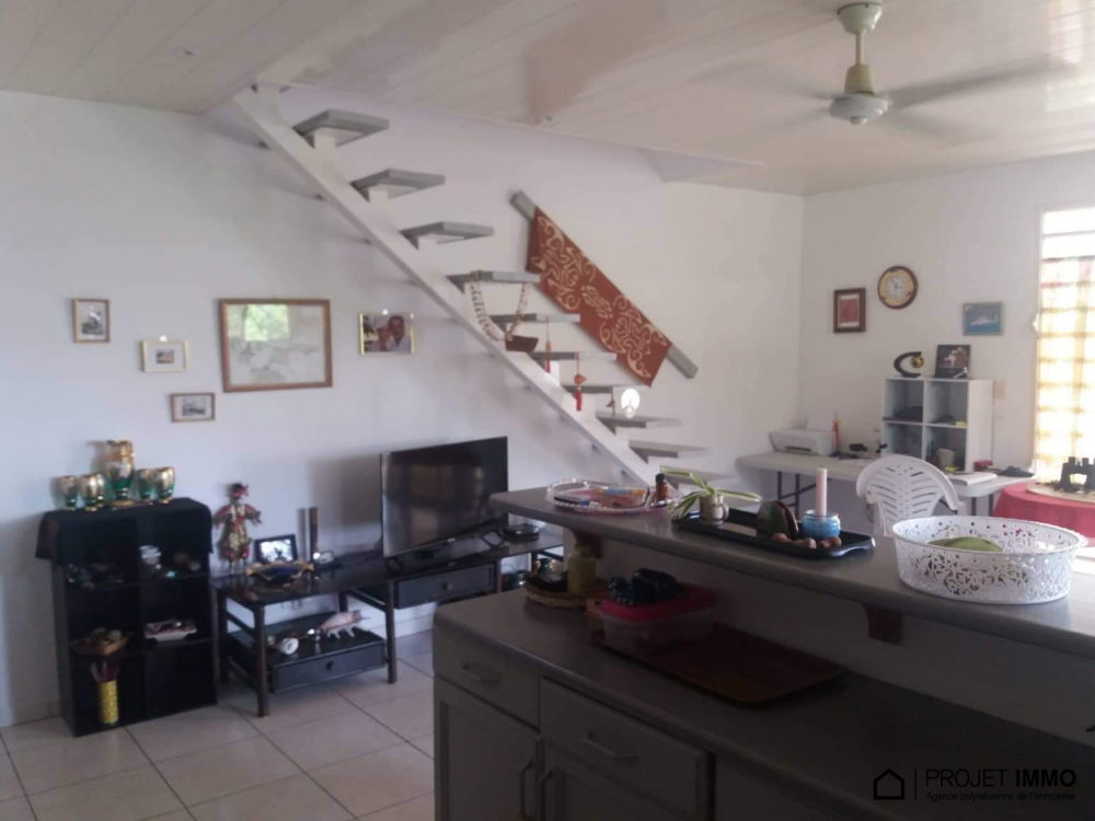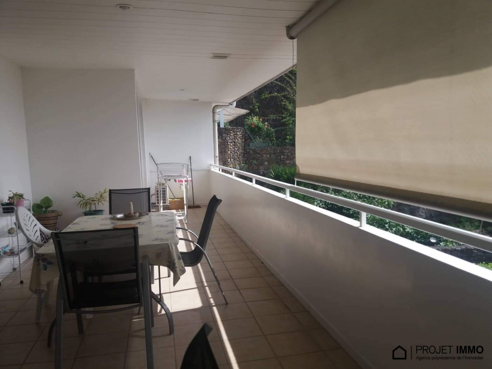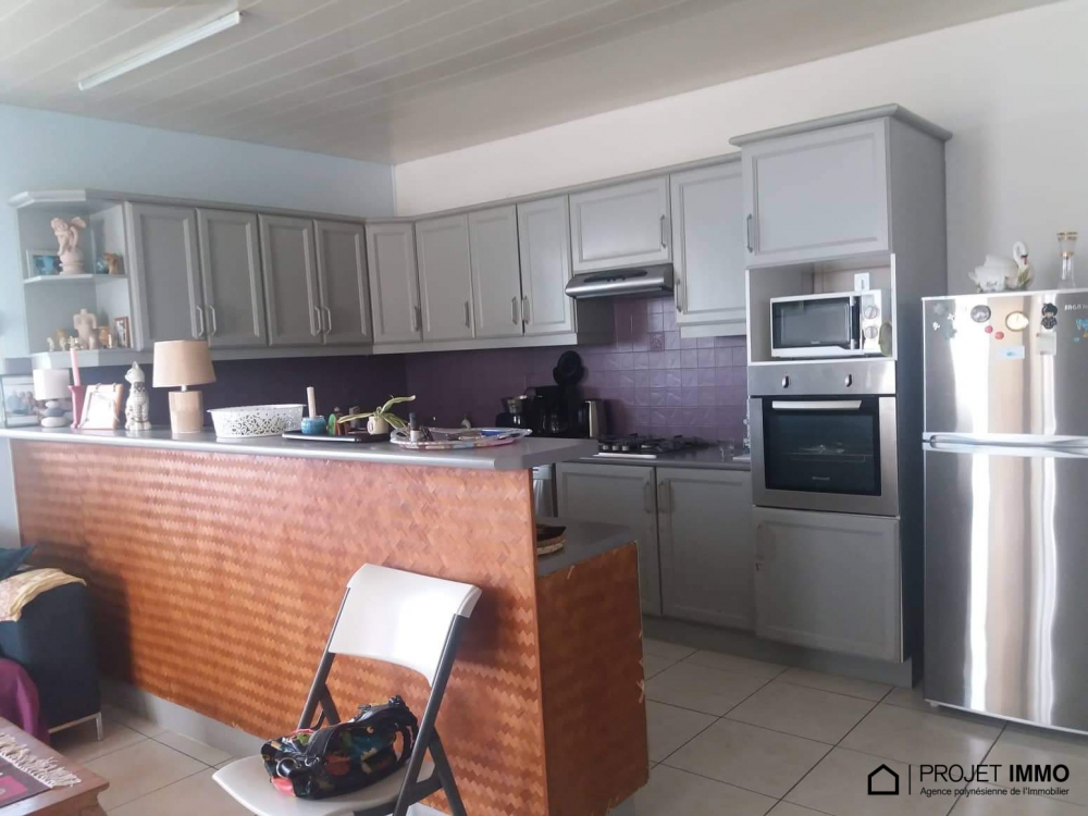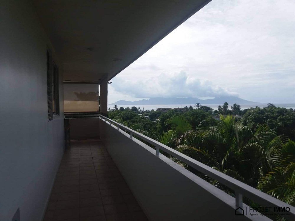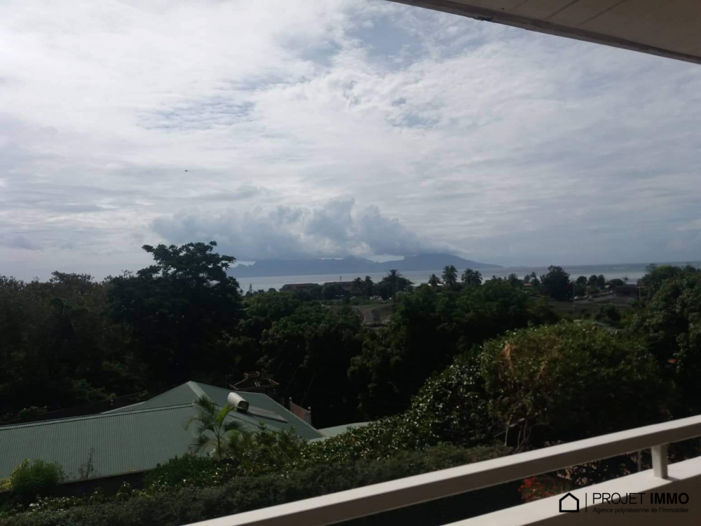 Situé dans une résidence sécurisée, cet appartement de 90m² de type F3+ avec 2 chambres, 2 salles de douche avec toilette, 1 cuisine ouverte sur le salon, 1 mezzanine qui sert d'espace libre, 1 terrasse couverte avec vue à 180° sur Moorea, 1 cellier, 2 places de parking couvertes, la piscine de la résidence, est à la vente à 60.480.000 fcp.