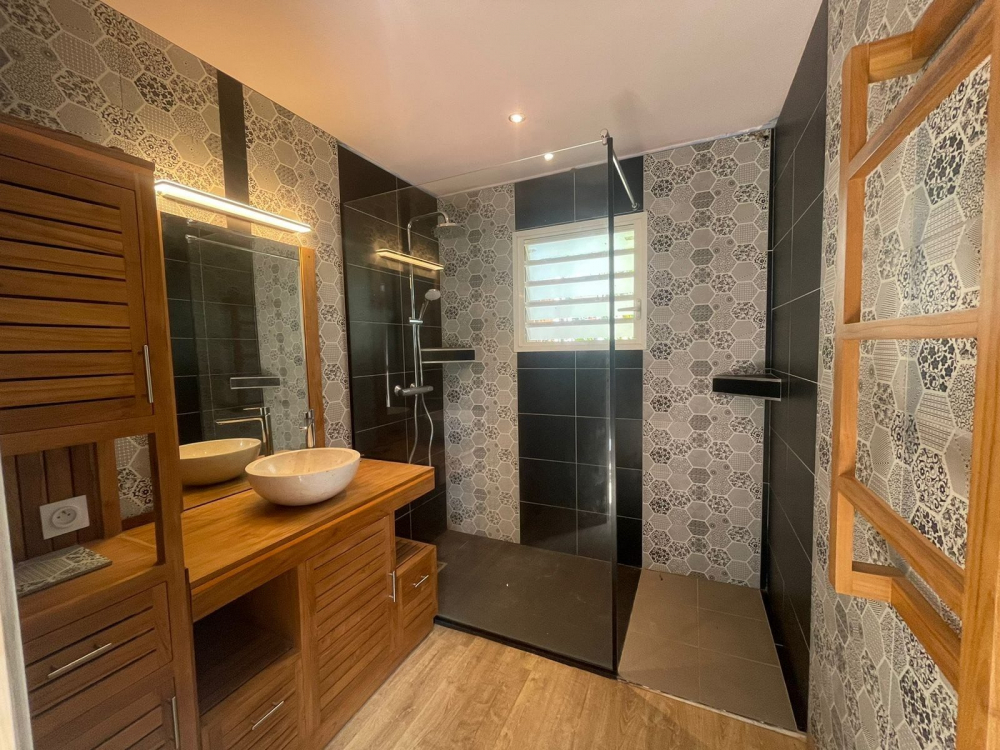 La villa, entièrement rénové, se compose au RDC d'une cuisine équipée ouverte sur le séjour, une terrasse en Deck, une suite parentale avec salle d'eau, un WC et une buanderie. A l'étage se trouve une seconde suite parentale aménagée avec placard, salle d'eau, WC et large dégagement.