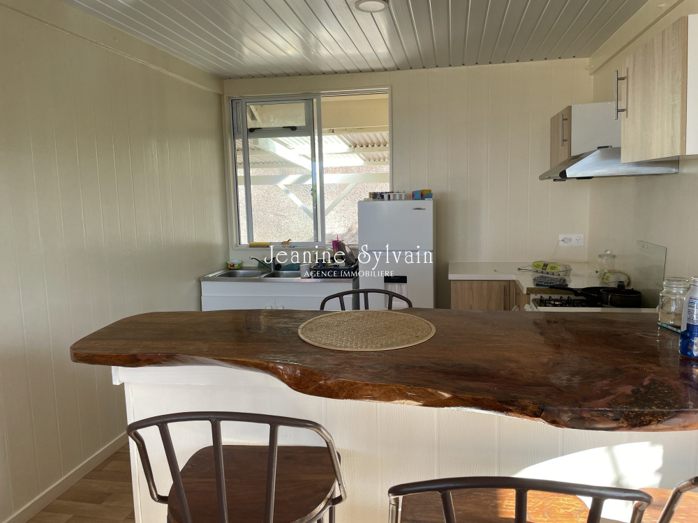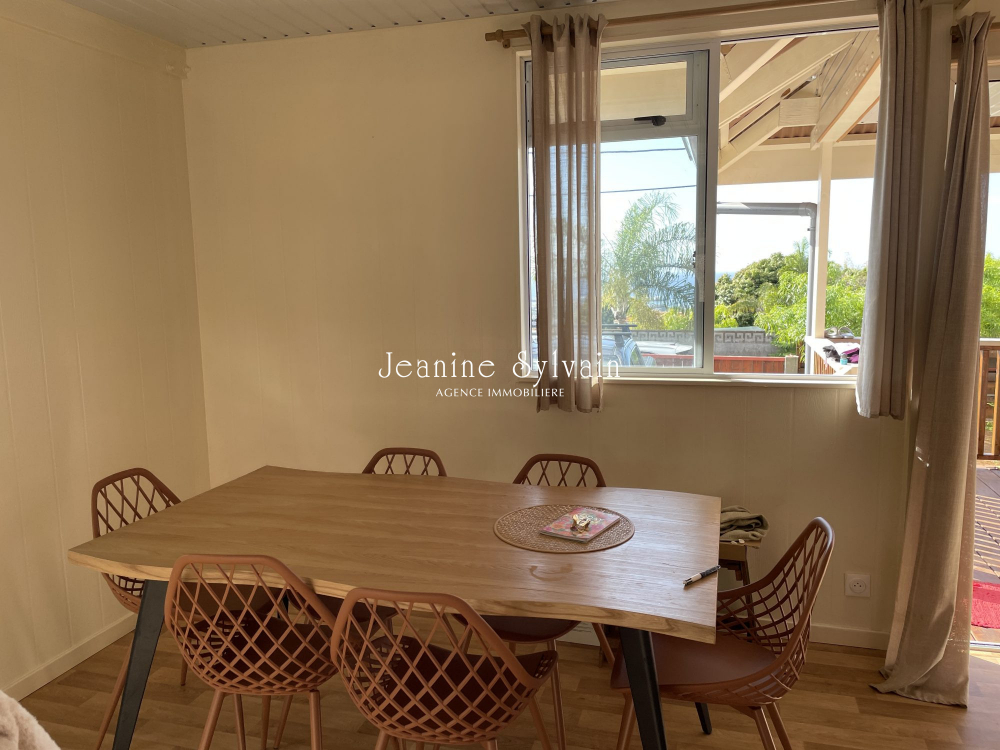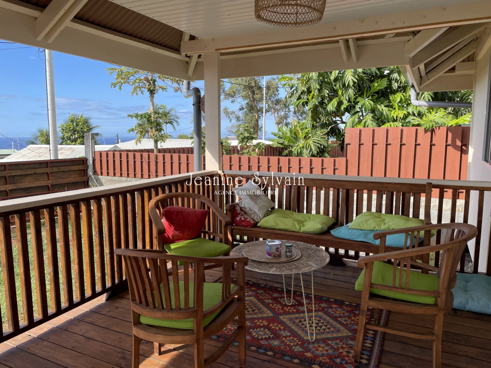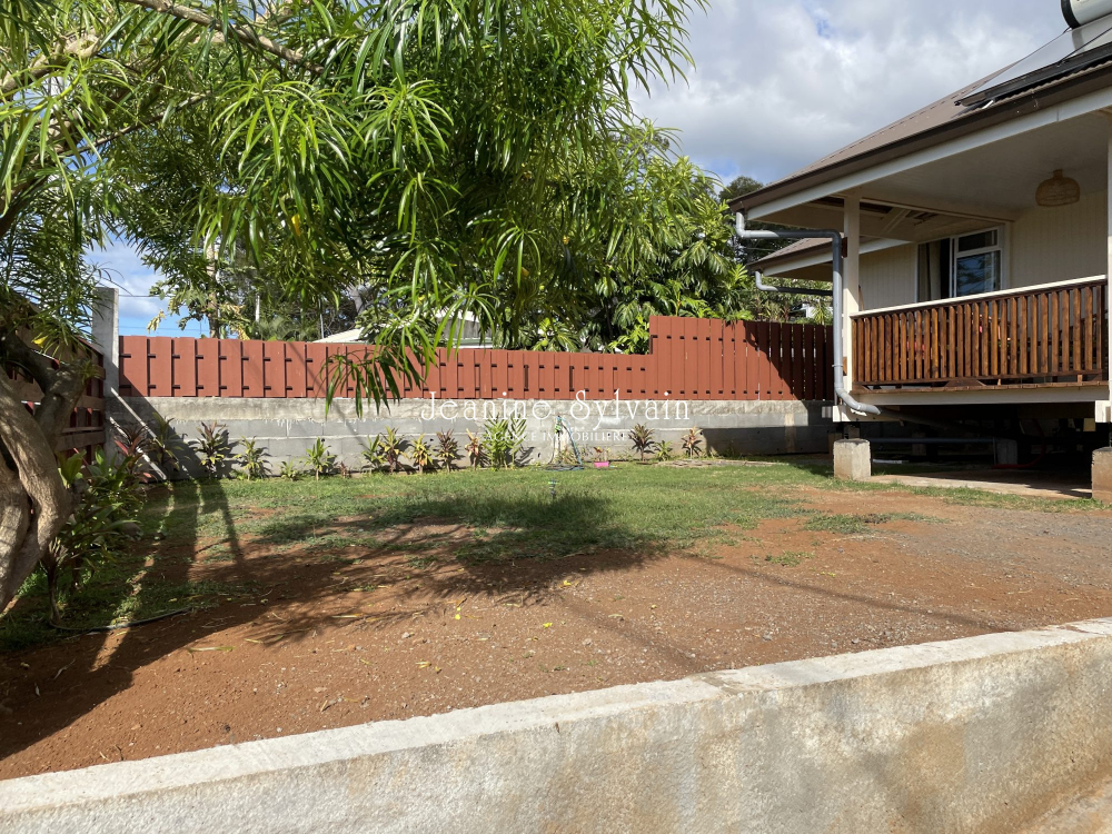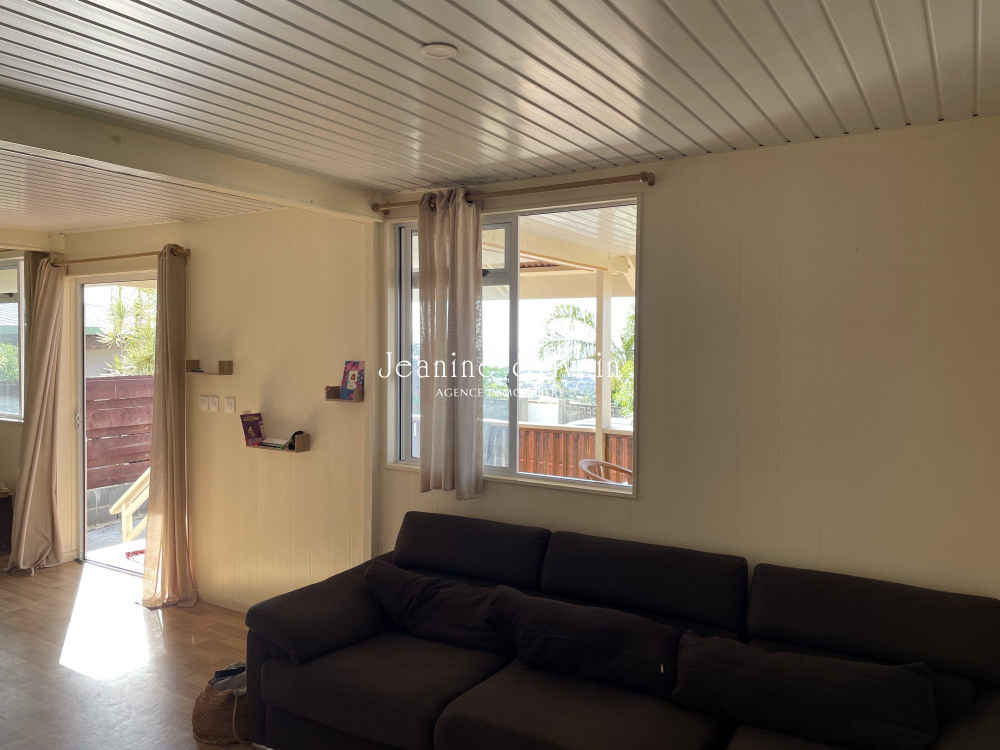 Pirae, sur les hauteurs dans une servitude très calme, avec vue dégagée sur Moorea et la mer, jolie maison neuve sur pilotis comprenant une belle terrasse couverte, 3 chambres, 1 salle d'eau, séjour cuisine aménagée et équipée, belle espace arrière couvert, jardin clôturé avec portail non automatique.