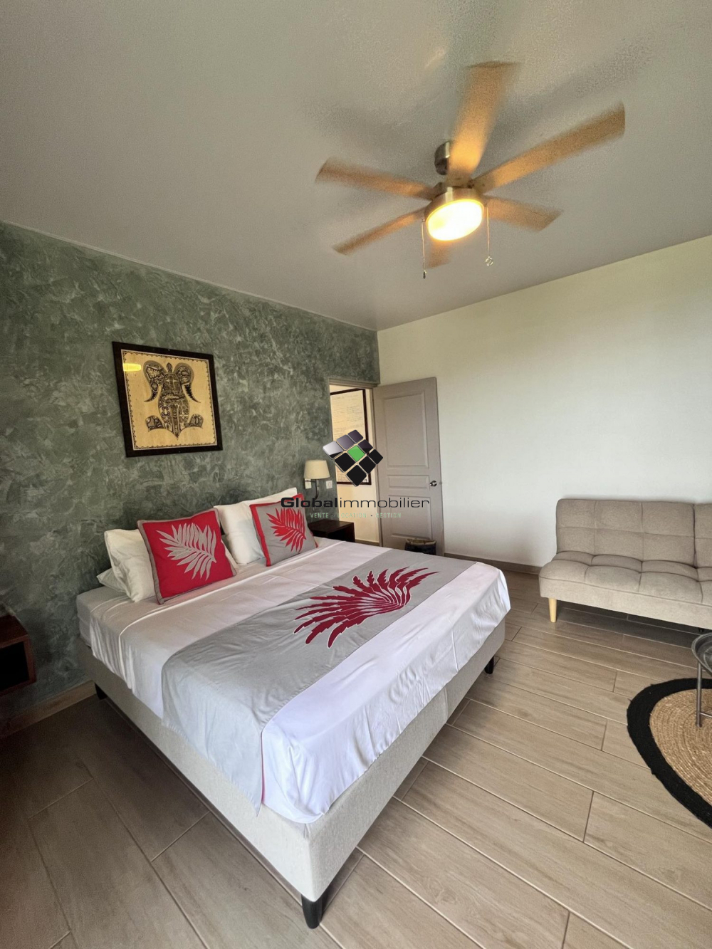 Chambre avec lit double et canapé convertible : Un espace de sommeil confortable avec un lit double, et un canapé convertible pour plus de flexibilité.