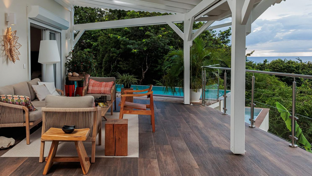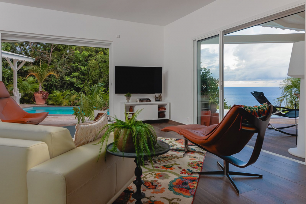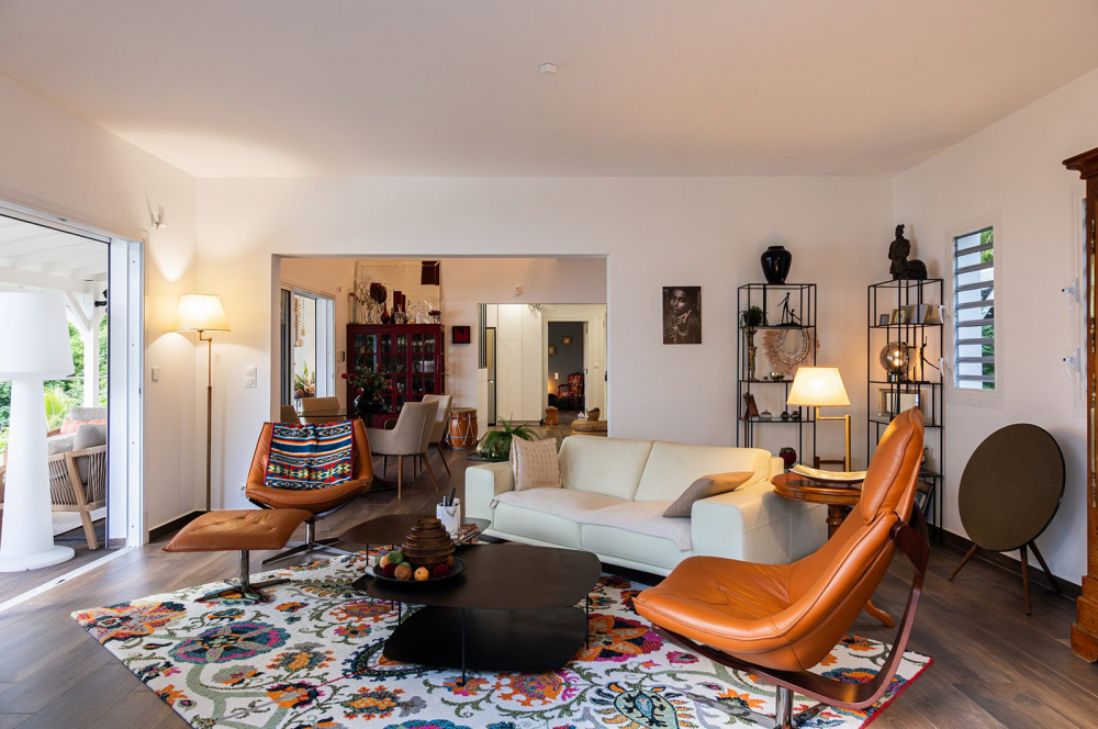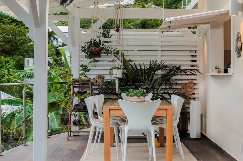 Cette propriété combine le luxe tant bien dans les espaces intérieurs qu'extérieurs. Un jardin tropical avec un carbet aménagé invitent à la détente et relaxation à l'abris des regards.