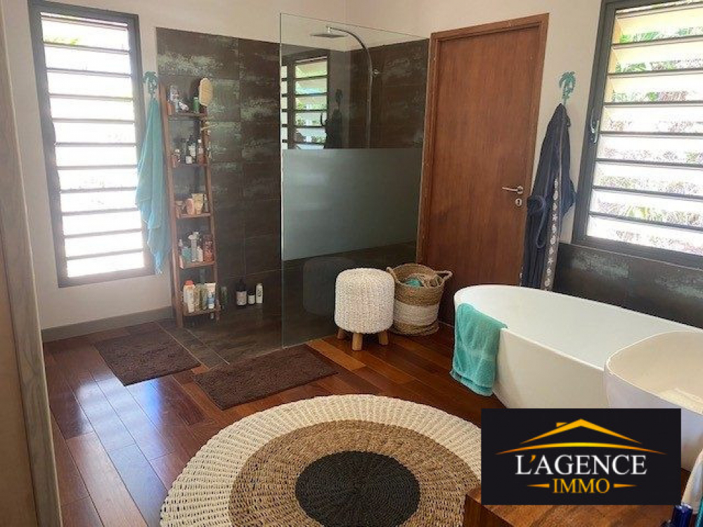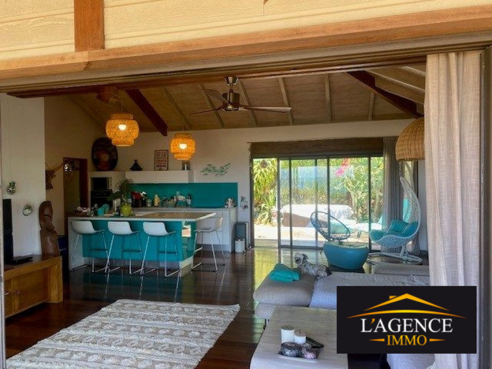 Bien niché dans un cadre paisible et verdoyant, avec une vue imprenable sur le lagon. La villa principale offre un séjour / cuisine de plus de 45 m² , deux chambres confortables dont une climatisée, une salle de bains moderne avec douche et WC, une buanderie.