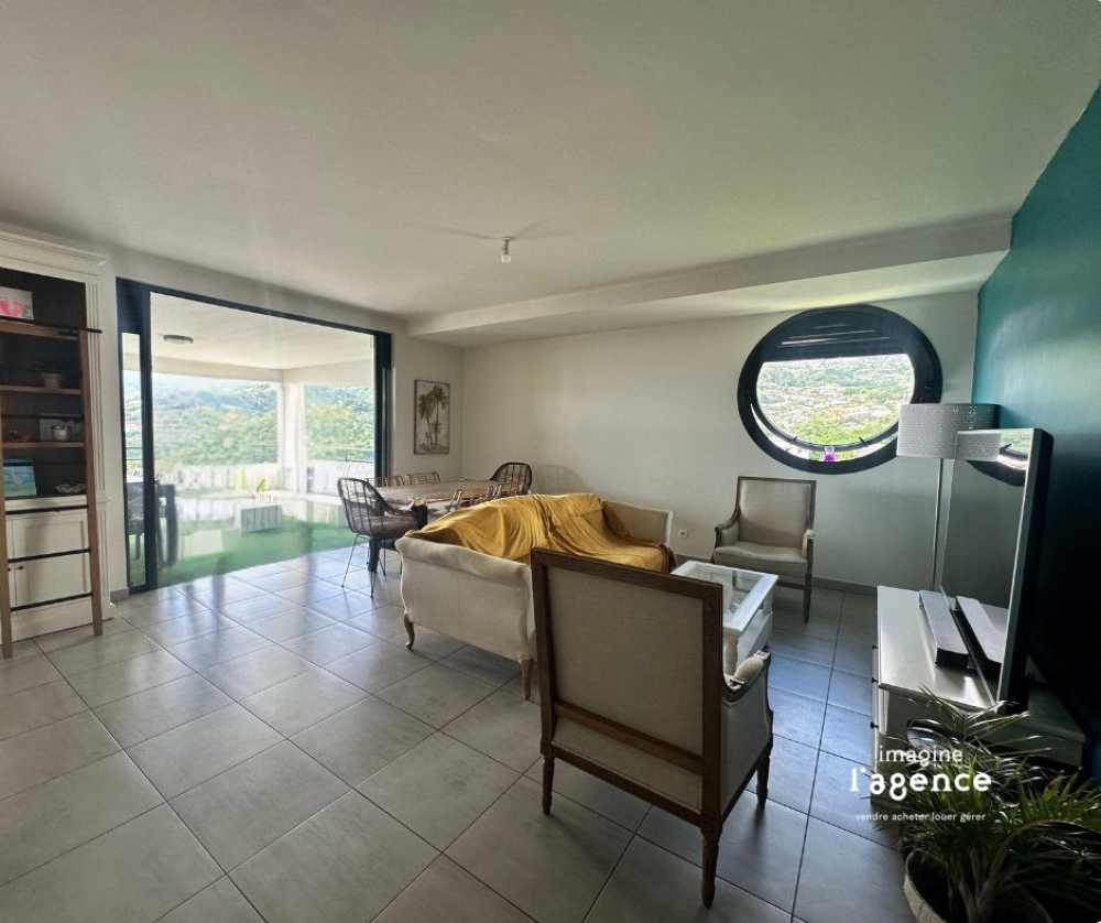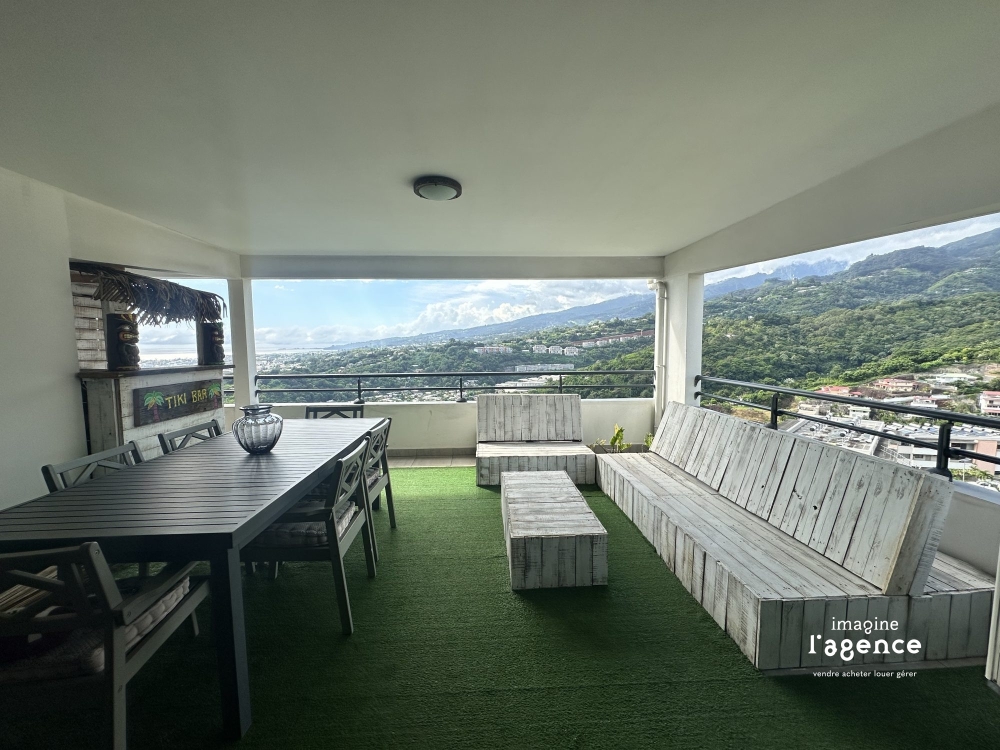 Au 5ème étage de la prestigieuse résidence TERA MATAI sur les hauteurs de l'Uranie, l'Agence Imagine vous présente en exclusivité ce bel appartement F4 de 118,9m2 offrant une vue panoramique sur la rade de Papeete et la montagne.