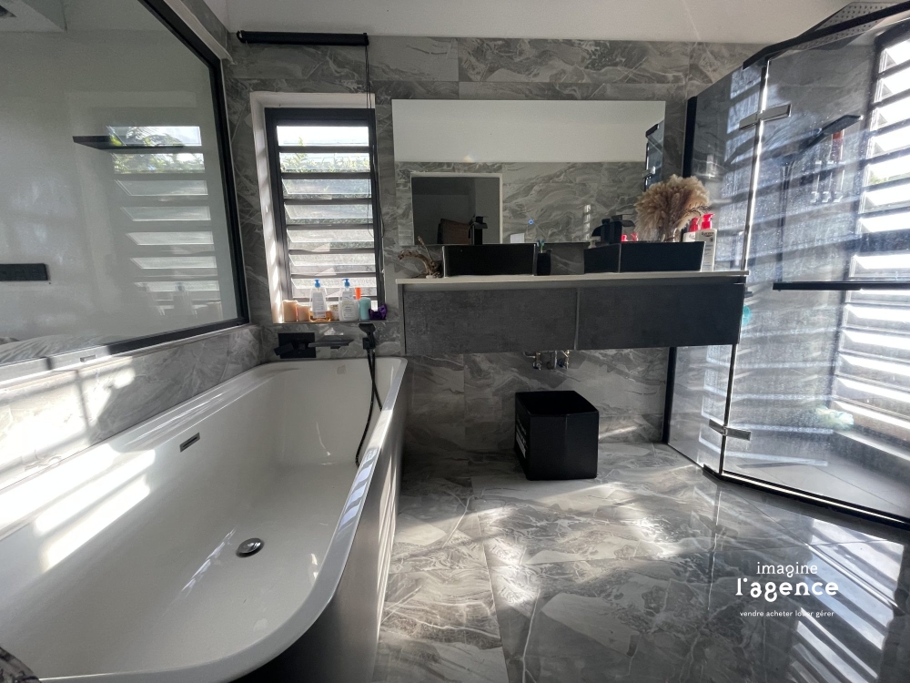 Cette superbe villa F6 de 150 m² habitables séduit par son architecture contemporaine et ses prestations haut de gamme. Clôturée et sécurisée, elle dispose d'un portail automatique et d'un garage couvert pour 2 véhicules. Les espaces de vie généreux s'ouvrent sur une grande terrasse couverte, une piscine et un magnifique jardin tropical entretenu, créant une véritable oasis de détente. La villa intègre des équipements éco-responsables avec chauffe-eau solaire et panneaux photovoltaïques.