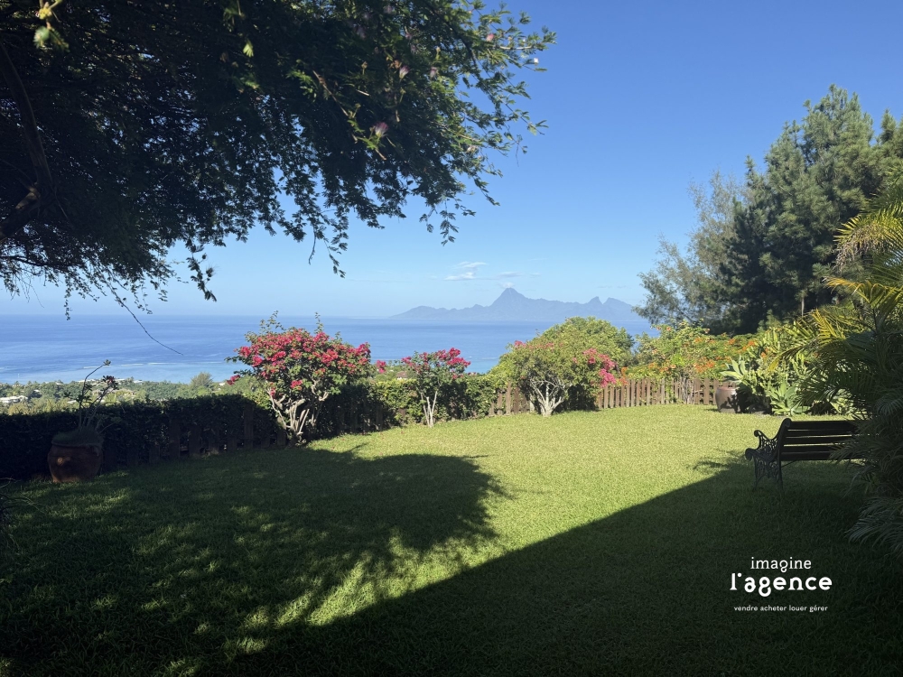 Vous serez séduit par la quiétude de cette charmante maison de type F4 d'une superficie de 255m2 sur un terrain magnifique de 1725m2 avec vue sur le lagon et Moorea.