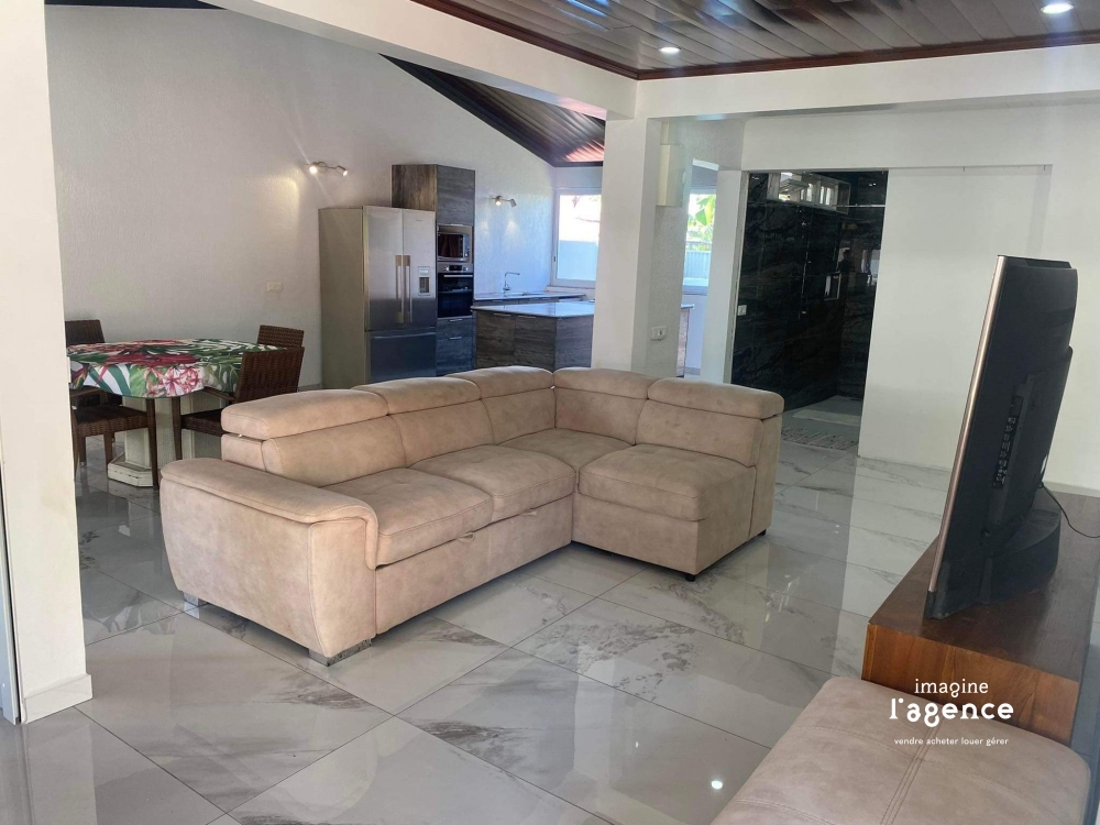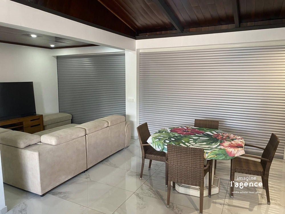 Cette magnifique maison F3 de 120 m² habitables, entièrement rénovée en 2020, offre des prestations modernes et un confort optimal. Le véritable atout de cette propriété réside dans sa piscine privée, créant un espace de détente idéal pour profiter pleinement du climat tropical. L'agencement intelligent avec cuisine à îlot central et les espaces généreux en font un lieu de vie parfait pour une famille.