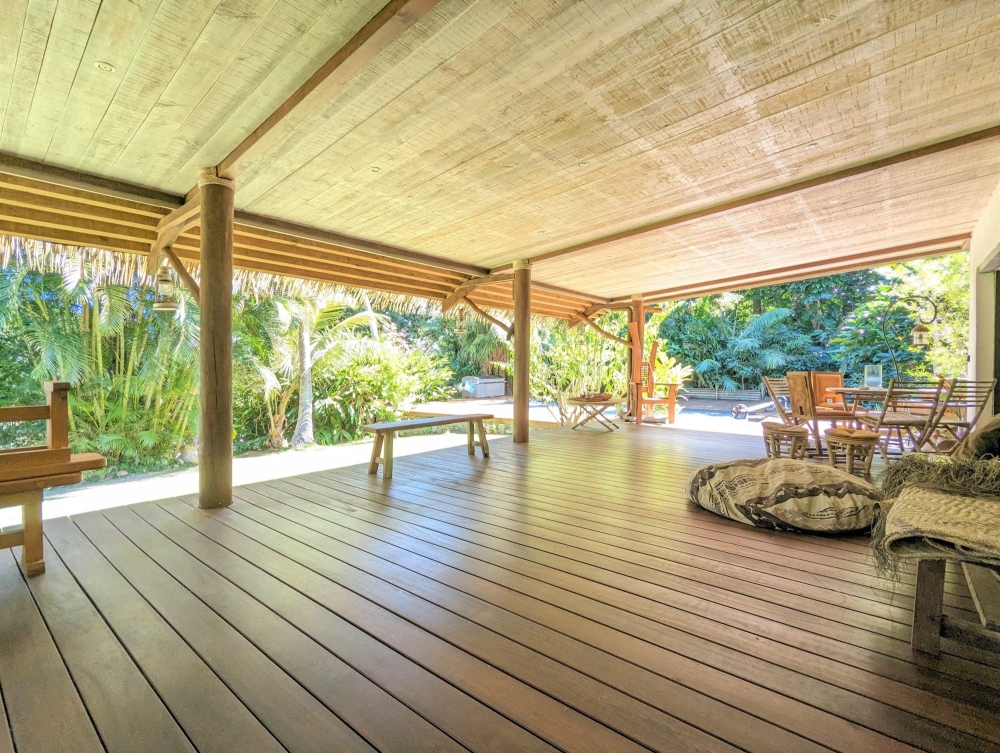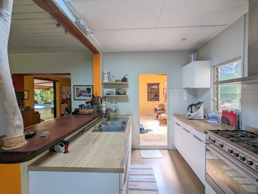 Situé en position dominante, au pied du Mont Dore et en impasse, villa en maçonnerie d'environ 150m², un patio de 60m², une terrasse couverte de 50m² et une piscine avec deck et faré. Le bien dispose également d'un Faré Mélanésien traditionnel de 45m², aménagé avec une salle d'eau, WC et une chambre. Un bungalow supplémentaire de 16m² et un atelier complètent le bien. Le tout bâti sur un magnifique terrain de 50 ares.