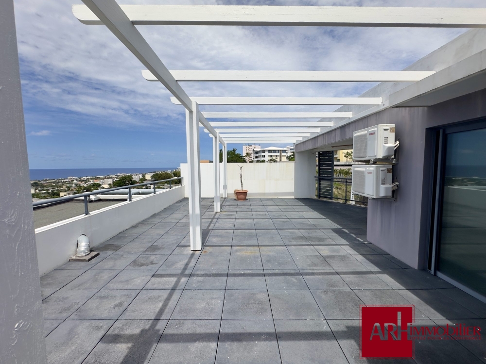 Visitez cet appartement récent, de type F4 Duplex aux derniers étages, avec ascenseur, d'une surface habitable de 89 m² environ + varangue et terrasse-pergola de 62 m² avec vue imprenable sur la ville et l'océan Indien.