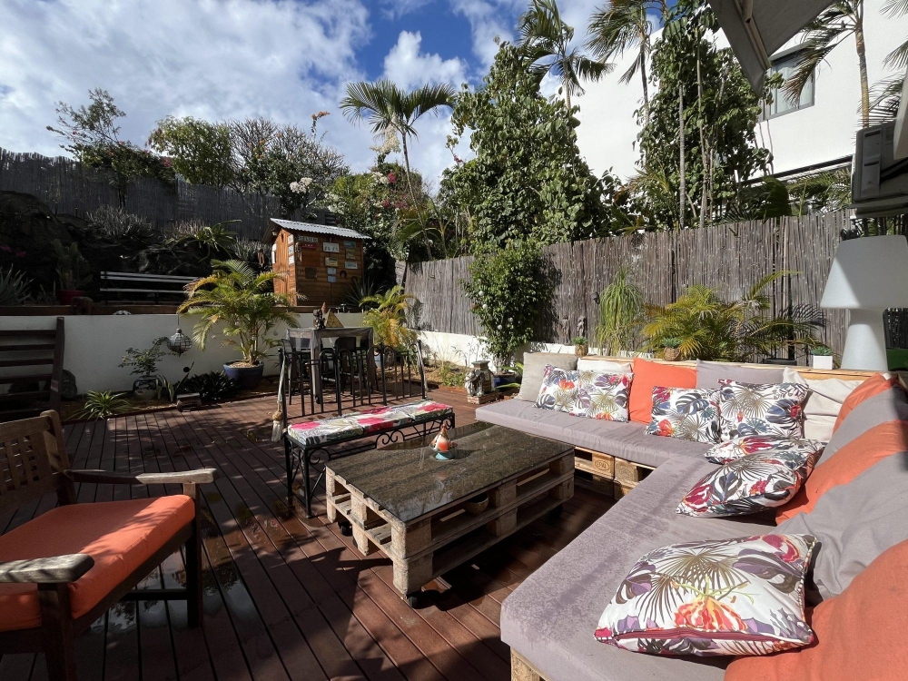 À louer – Superbe appartement F3 meublé de 100 m² habitable avec terrasse de 44 m2, jardin et rocaille aménagée et 2 parkings