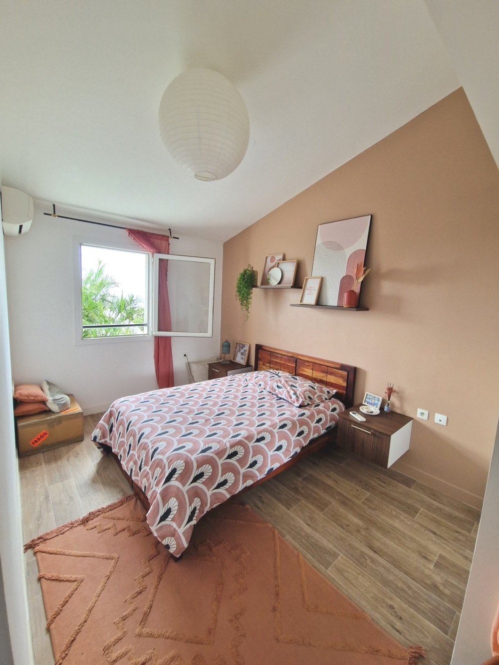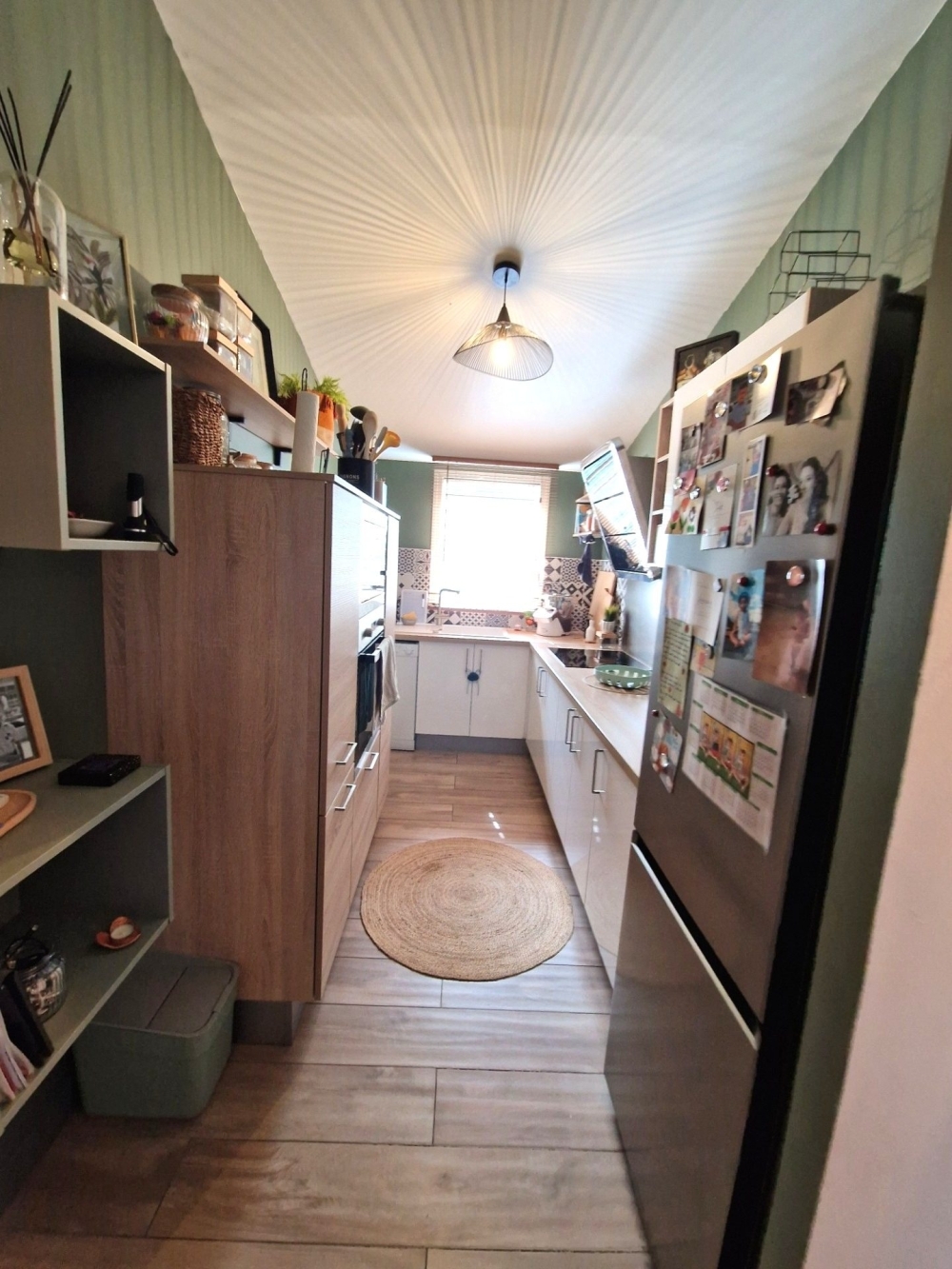- Au rez de chaussée : entrée, un grand WC avec lave mains, une chambre avec placard ouvrant sur le jardinet arrière, un séjour ouvert vers la varangue, une cuisine équipée (meubles bas et hauts, plaque, hotte)