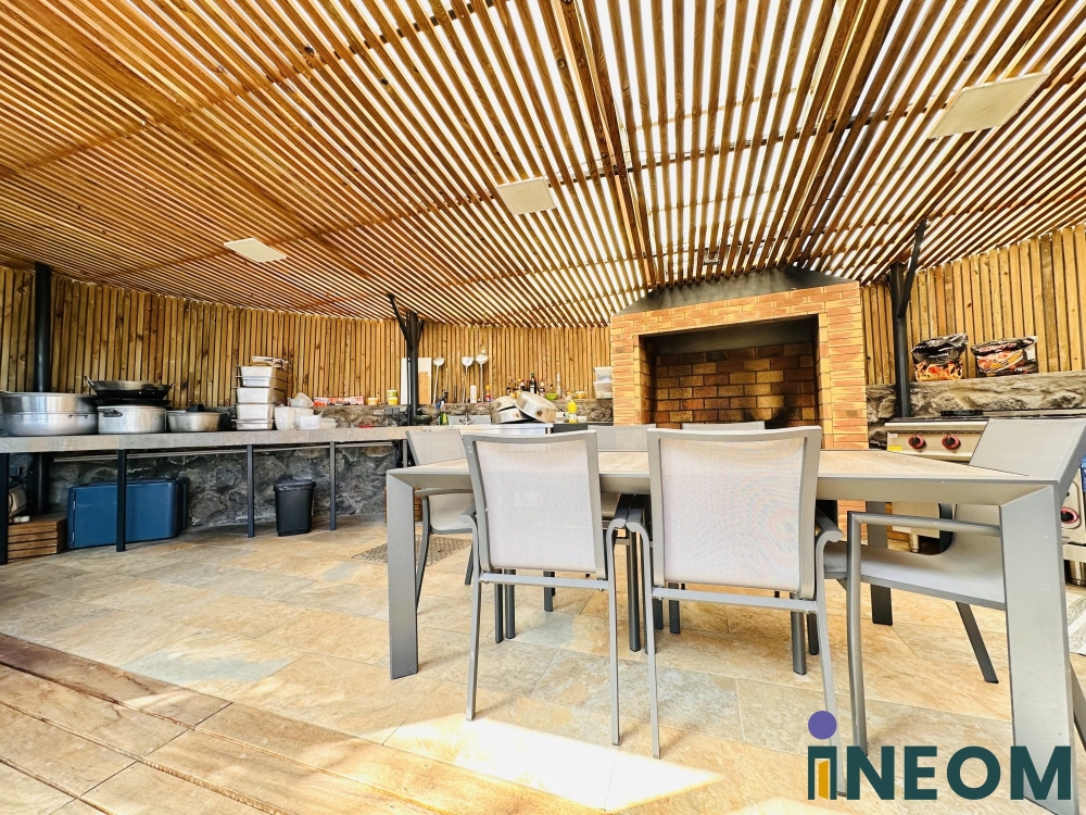 – Une cuisine extérieure fermée avec coin feu de bois