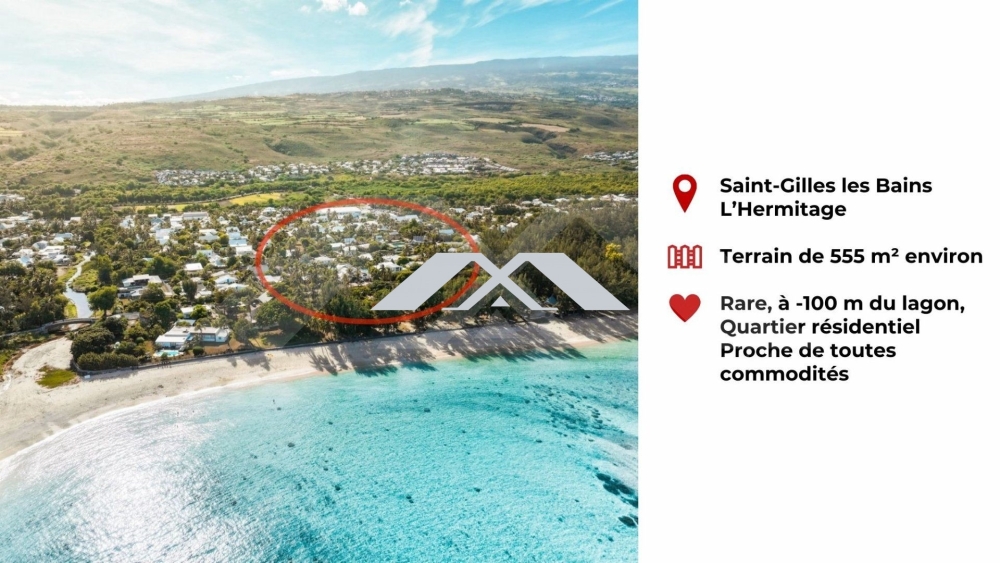 MAXImmo vous propose ce terrain plat d'environ 555 m², situé dans un lotissement calme et résidentiel de l'Hermitage, à Saint Gilles les Bains, à 100 m du lagon. La plage est accessible à pied.