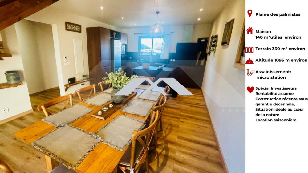 MAXImmo vous propose cette maison mitoyenne d'un côté, avec un accès indépendant, construite en 2023 (bénéficiant de toutes les garanties légales) est idéalement située à La Plaine des Palmistes.