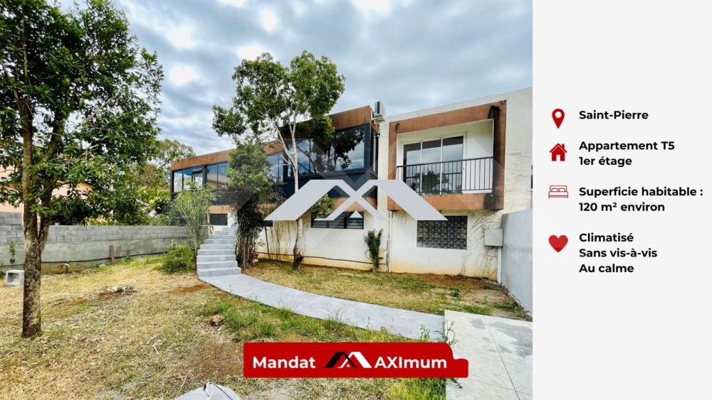 MAXImmo vous propose cet appartement spacieux de type T5, d'environ 120 m², idéalement situé dans le secteur de Bois d'Olive. Ce bien offre un cadre de vie confortable et fonctionnel, à proximité de toutes les commodités (écoles, lycées, commerces, Leclerc…)