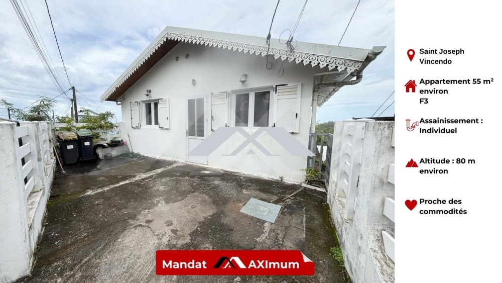 Situé dans le quartier calme et très bien desservi de Vincendo à Saint Joseph, ce bel appartement F3 d'environ 55 m² habitable composé d'un séjour, d'une cuisine séparée, de deux chambres, de toilettes séparées et d'une salle de bain avec baignoire.
