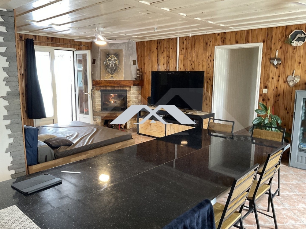 MAXImmo vous propose cette maison F5 d'environ 197 m², de 2003, avec permis de construire, édifiée sur une parcelle d'environ 2800 m² 'bornée', composée de trois chambres, un bureau, un cellier, une salle de bain et douche, une grande salle de réception, une cheminée, une véranda, un comble aménageable.