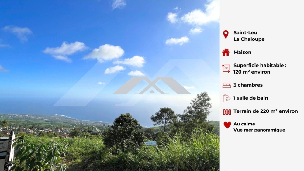 MAXImmo vous propose une charmante maison type F4 d'environ 120 m², à la Chaloupe Saint Leu, avec une vue mer panoramique.