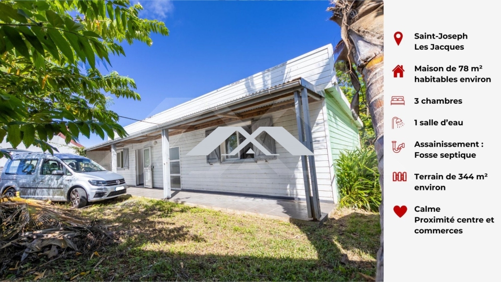 MAXImmo vous propose cette maison F4 de plain-pied d'environ 78 m² à Saint-Joseph