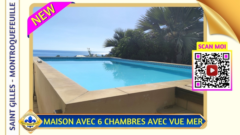 MAISON AVEC VUE MER À SAINT-GILLES : Située dans un quartier résidentiel de Saint-Gilles-les-Bains, cette maison familiale de 195 m² est perchée sur un terrain de 500 m² avec une VUE MER dégagée et dominante, sans aucun vis-à-vis.