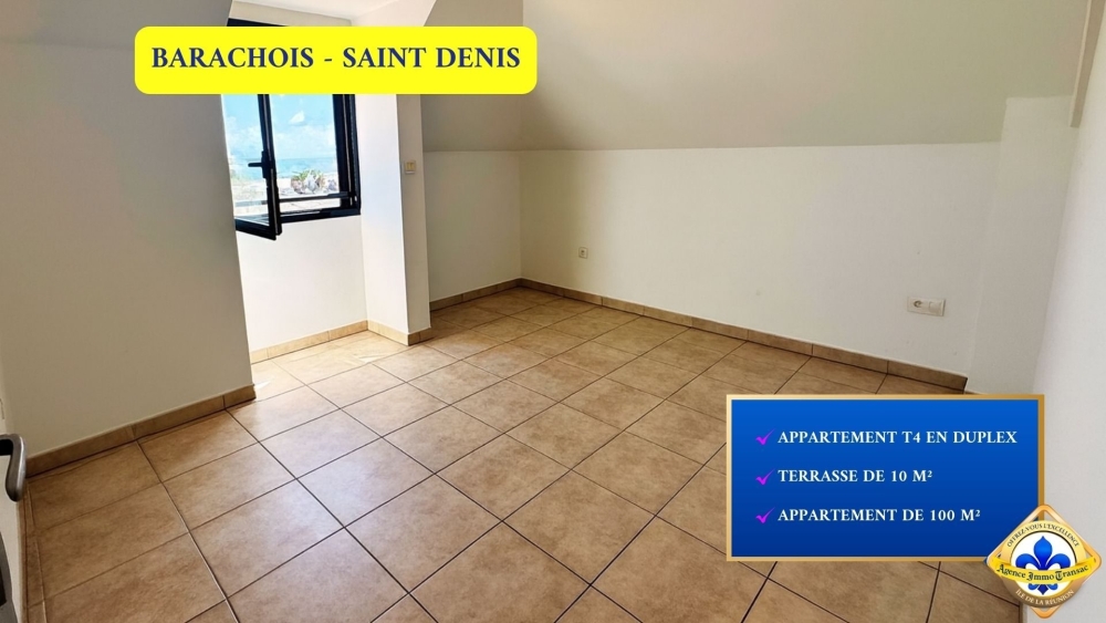 T4 À SAINT-DENIS AVEC TERRASSE : Un appartement T4 en DUPLEX de 91 m² habitables, situé au 3e et dernier étage d'une résidence de 2011 avec ascenseur, à deux pas du centre-ville.