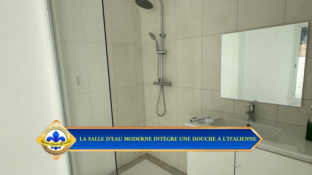 La salle d'eau, rénovée en 2025, combine fonctionnalité, matériaux contemporains et praticité au quotidien.