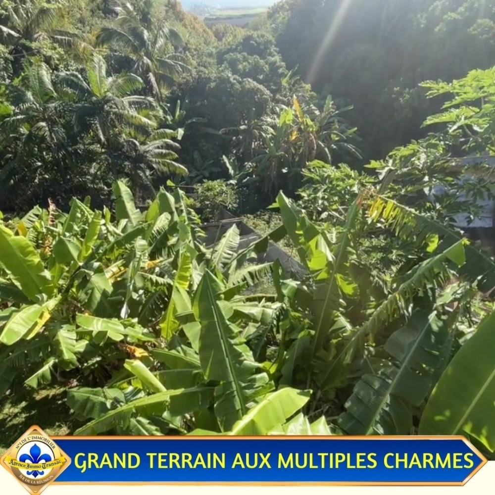 GRAND TERRAIN AUX MULTIPLES CHARMES : Le terrain de 1800 m² est agrémenté de bananiers et d'une nature luxuriante, offrant un espace parfait pour aménager un jardin ou un espace de détente.
