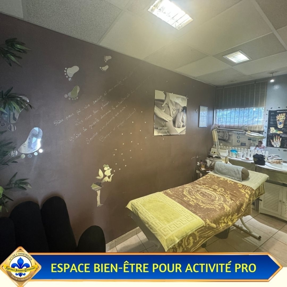 PIÈCE ZEN DÉDIÉE AU SOIN PERSONNEL : Une seconde pièce de soins, équipée d'une table de massage et d'une décoration apaisante, est parfaitement adaptée pour des services bien-être ou des aménagements selon vos besoins.